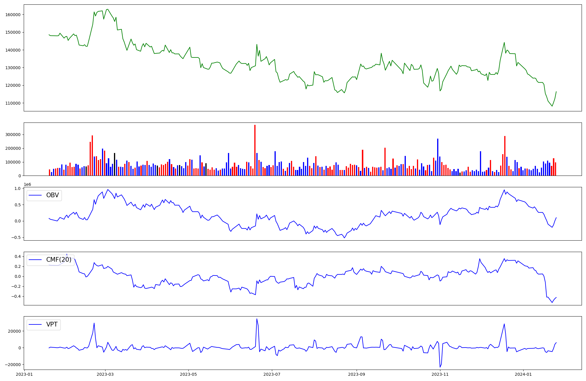 | OBV | CMF | VPT | |