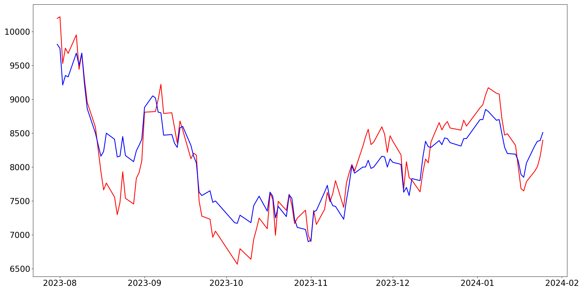 [ - : 실제값(종가) / - : 예측값(종가) ]