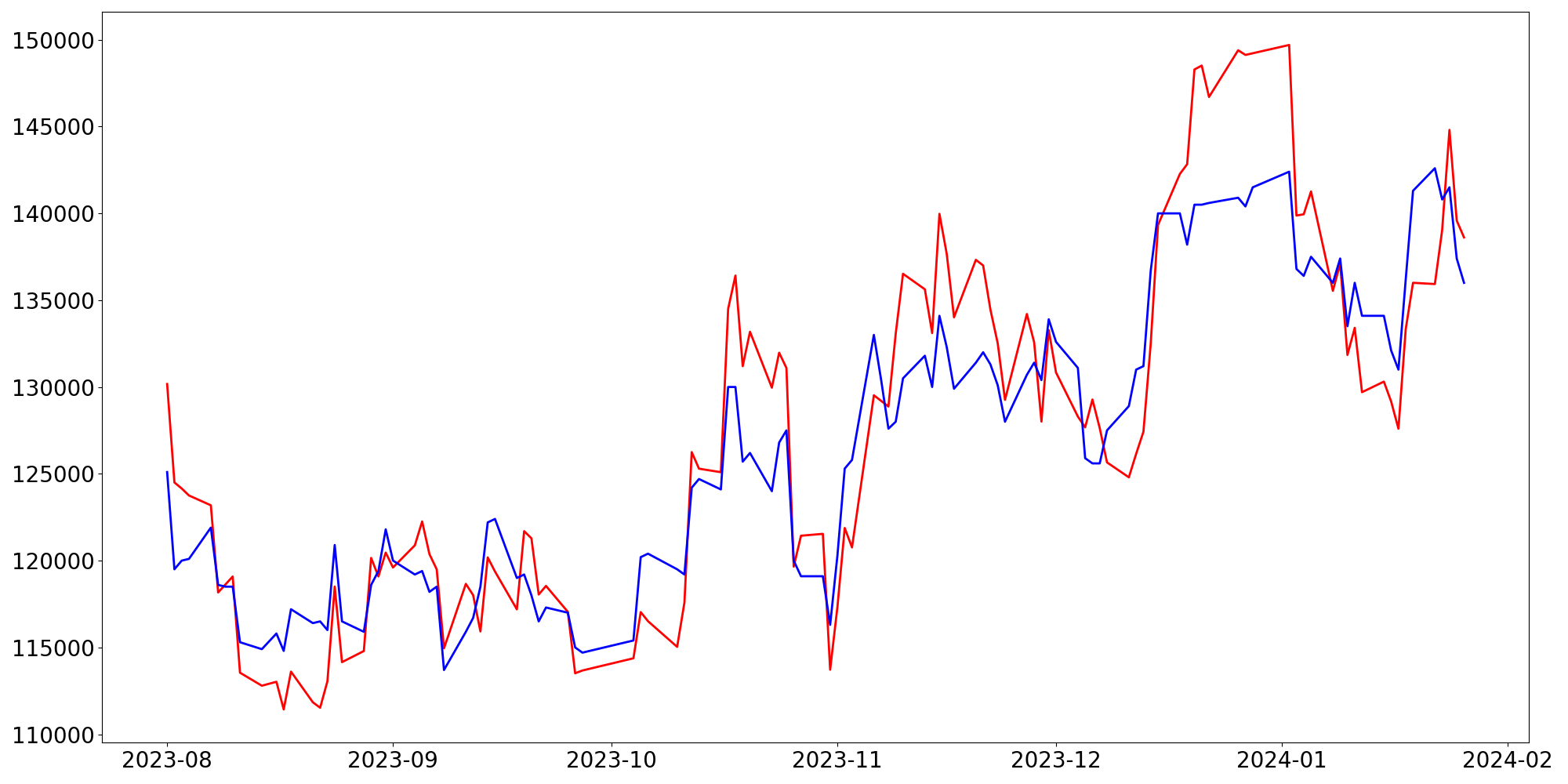 [ - : 실제값(종가) / - : 예측값(종가) ]