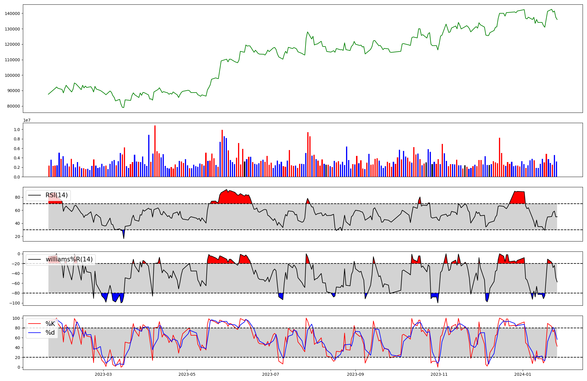 | RSI | Williams %R | stochastic(%K) | |