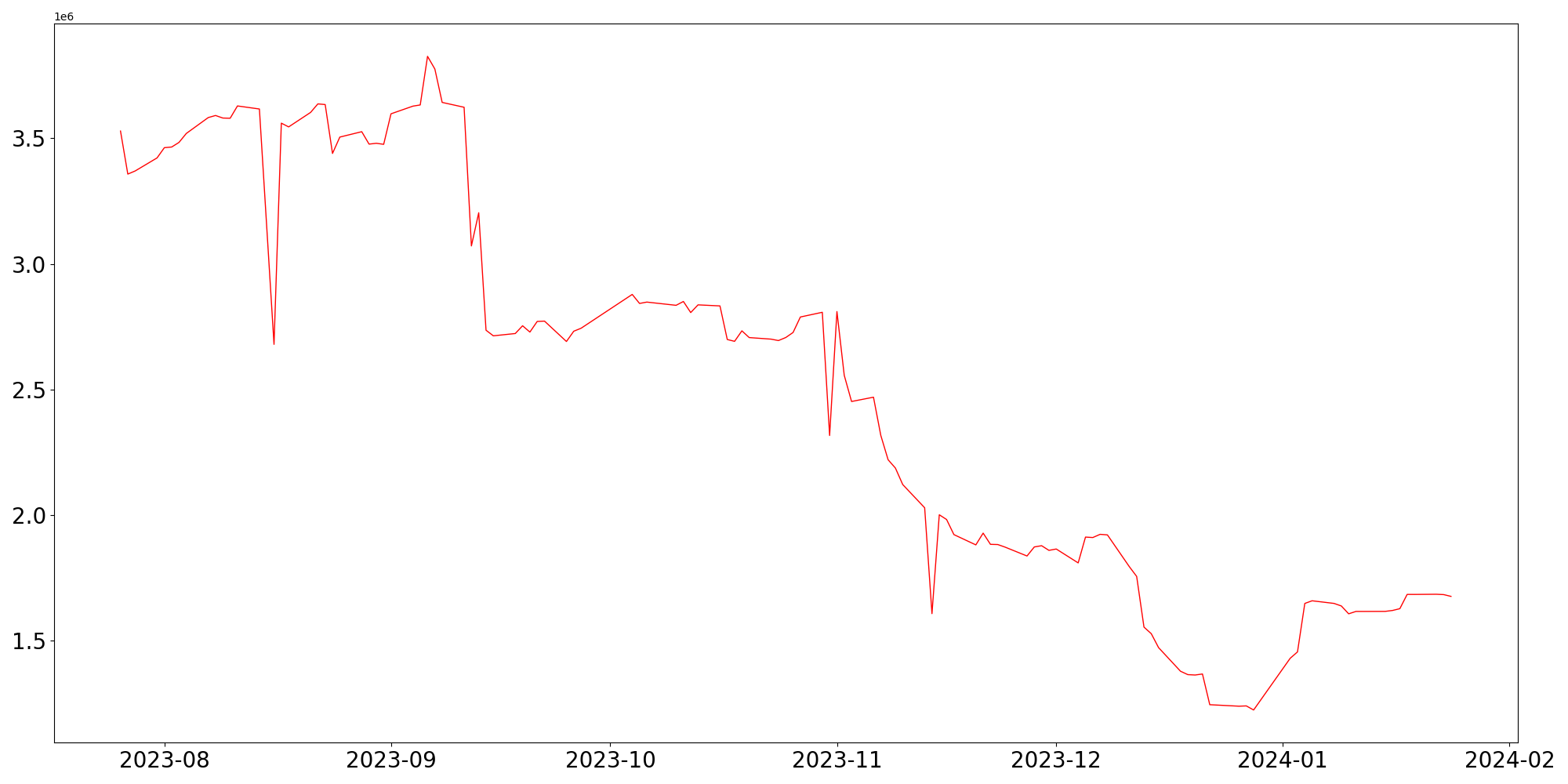| 20일 | -1,307,672 | -1,751,501 | 2,979,714 |