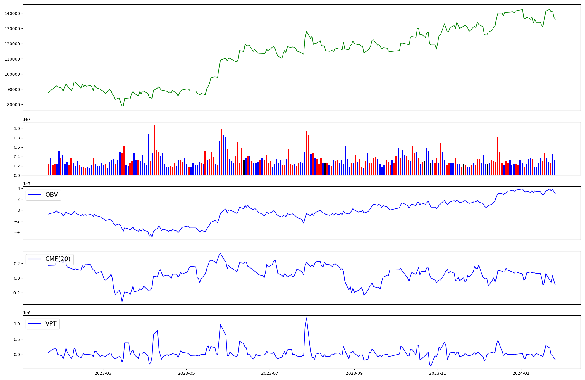 | OBV | CMF | VPT | |