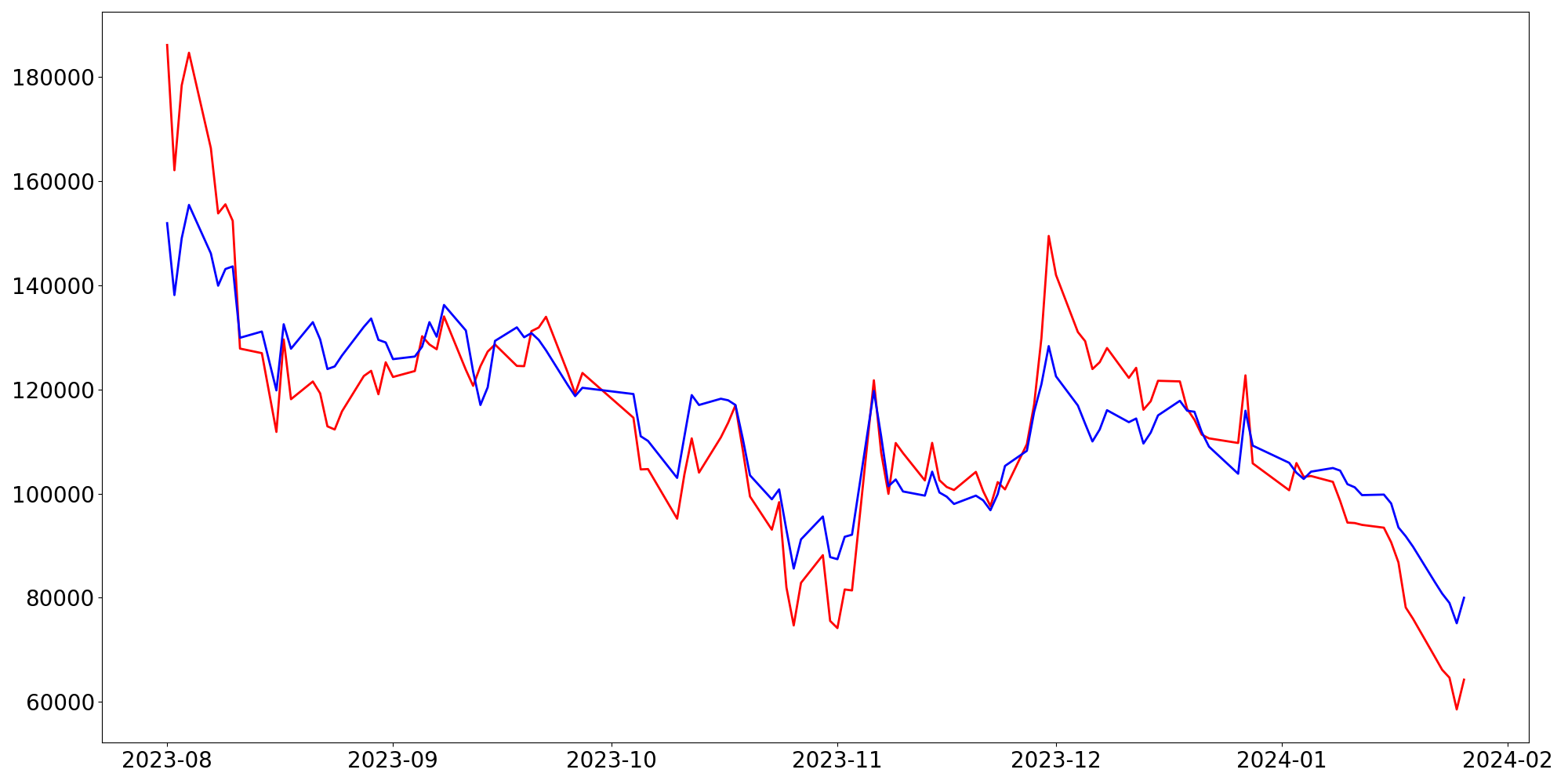 [ - : 실제값(종가) / - : 예측값(종가) ]