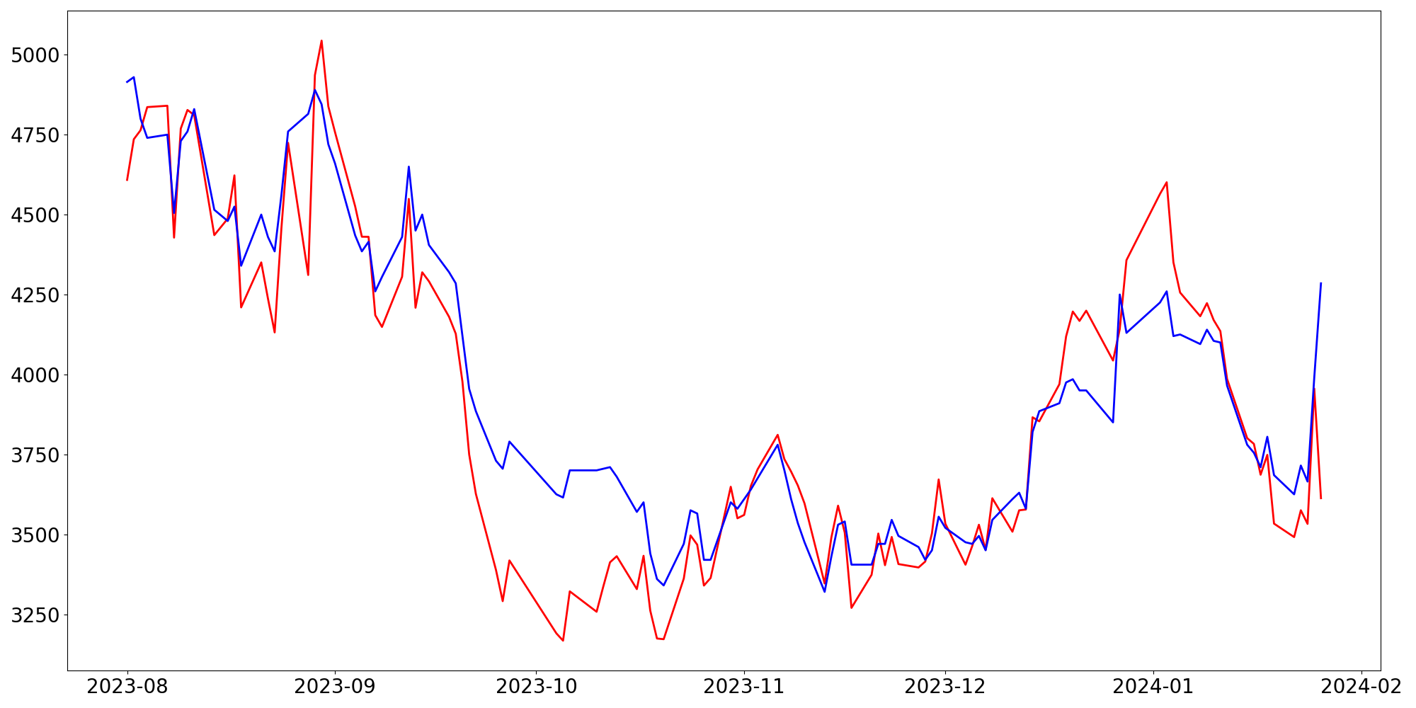 [ - : 실제값(종가) / - : 예측값(종가) ]