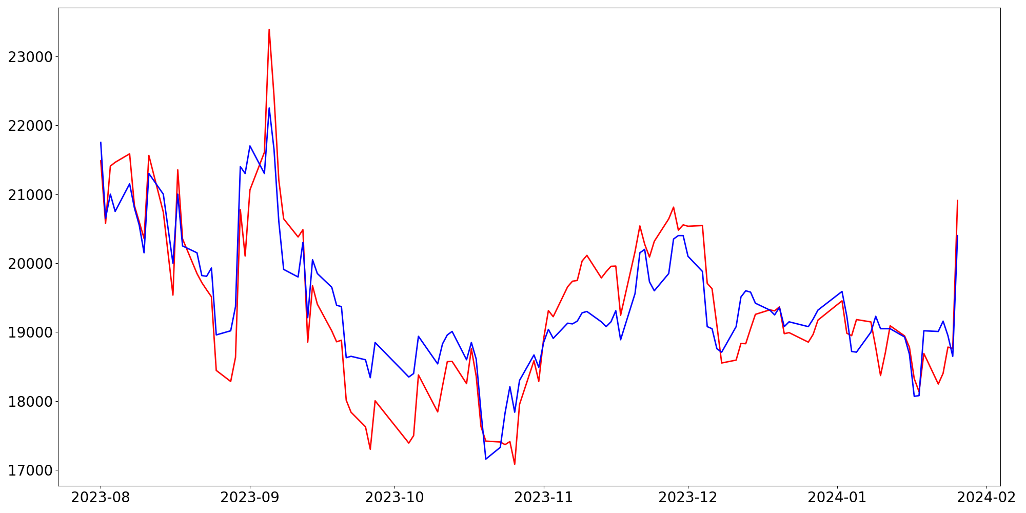 [ - : 실제값(종가) / - : 예측값(종가) ]