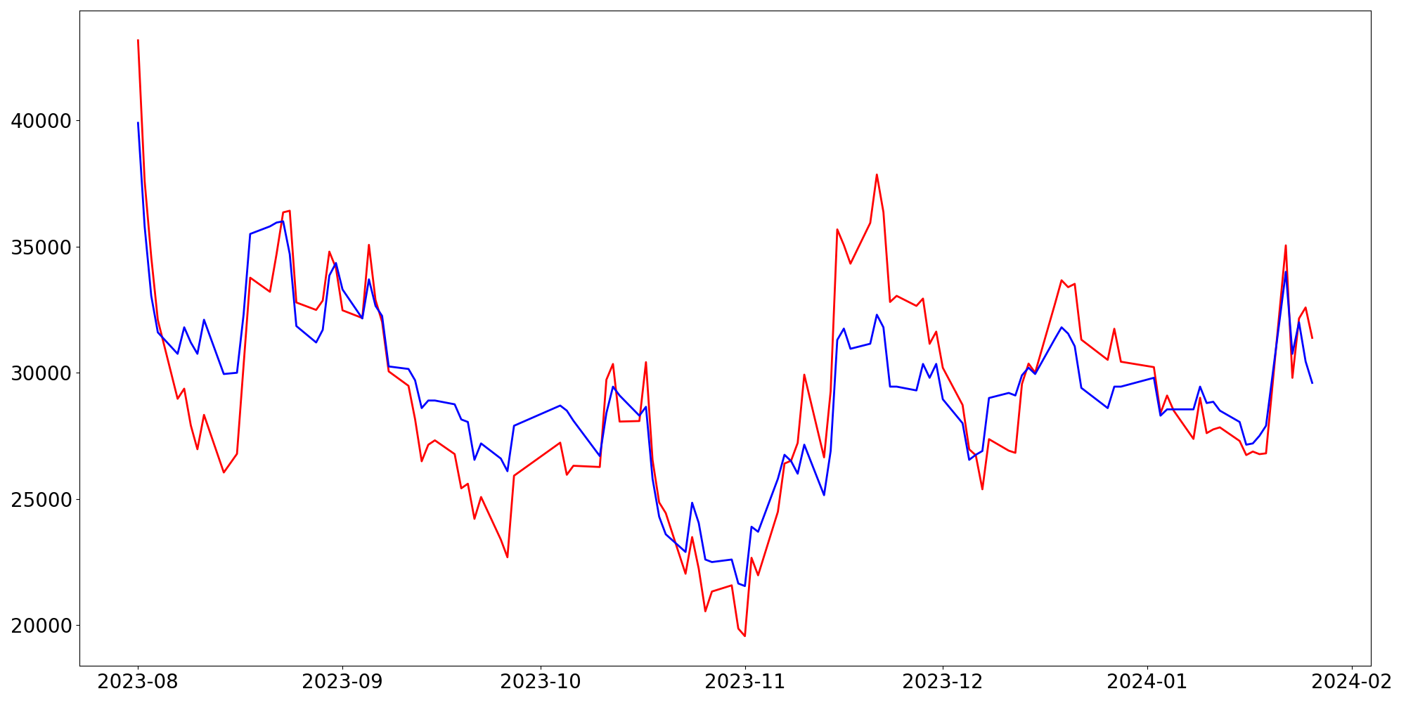 [ - : 실제값(종가) / - : 예측값(종가) ]