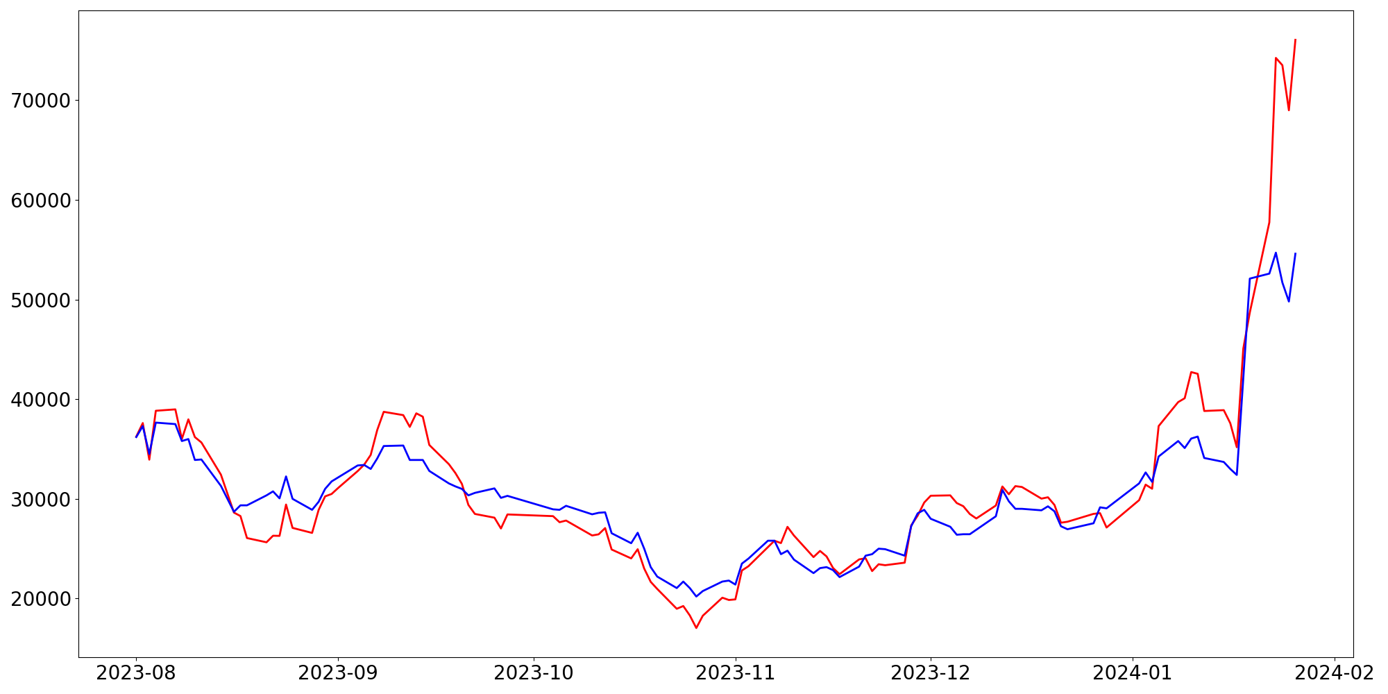 [ - : 실제값(종가) / - : 예측값(종가) ]