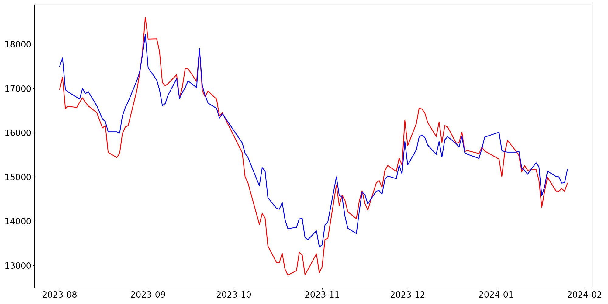 [ - : 실제값(종가) / - : 예측값(종가) ]