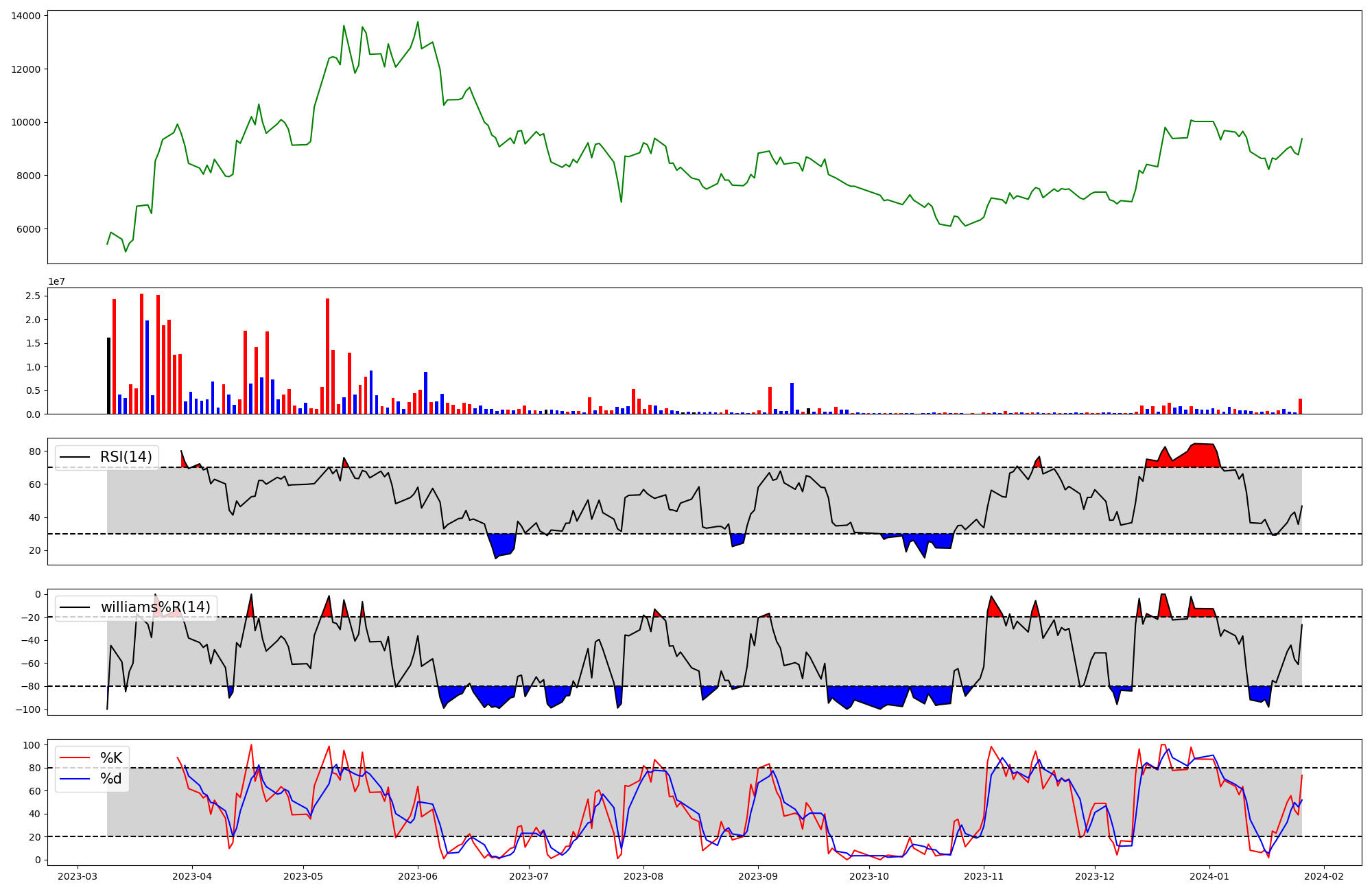 | RSI | Williams %R | stochastic(%K) | |