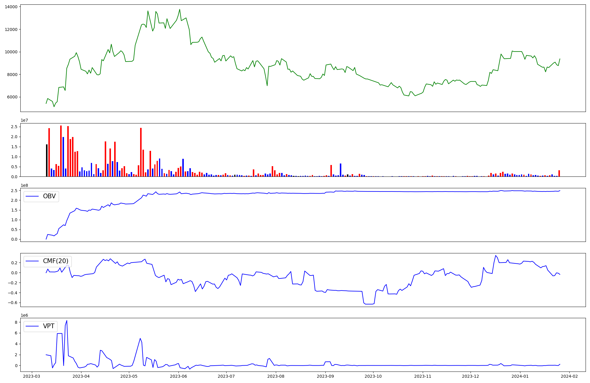 | OBV | CMF | VPT | |