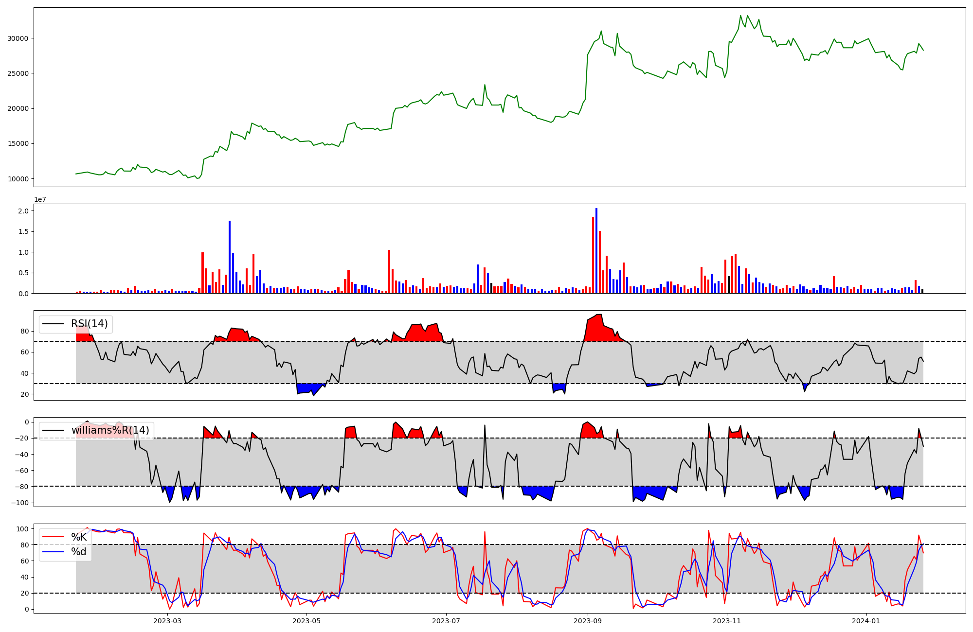 | RSI | Williams %R | stochastic(%K) | |