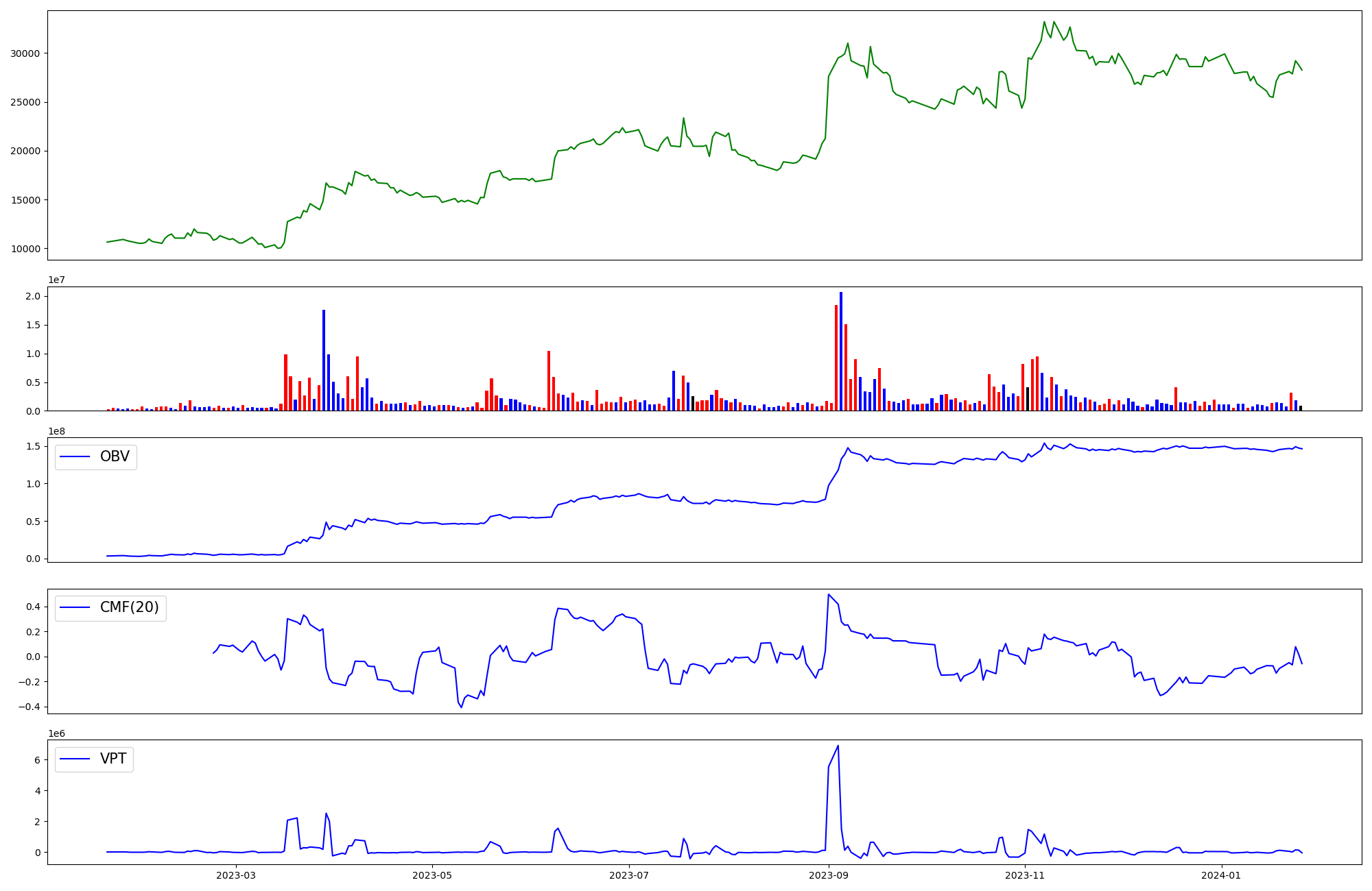 | OBV | CMF | VPT | |