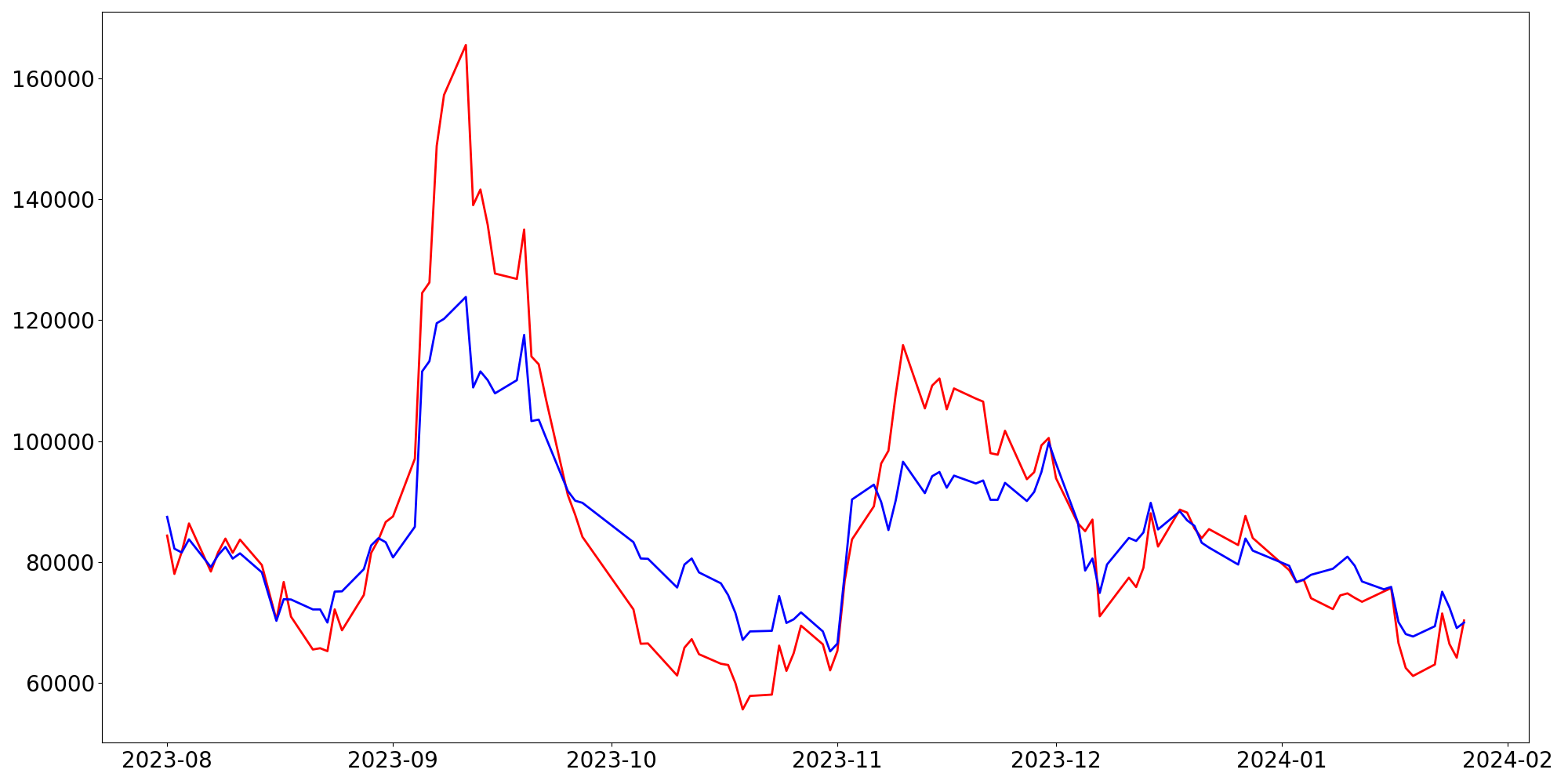 [ - : 실제값(종가) / - : 예측값(종가) ]