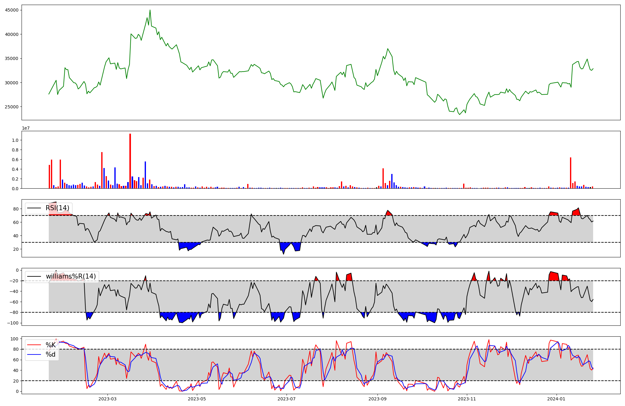 | RSI | Williams %R | stochastic(%K) | |