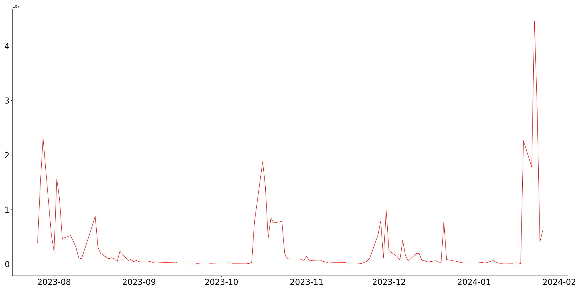 일별 공매도 거래량 추이를 그래프로 나타낸 것으로 공매도 거래량이 증가할 수록 단기적으로 가격 하락을 예측하는 시장참가자가 증거하는 것으로 판단해 볼 수 있습니다.