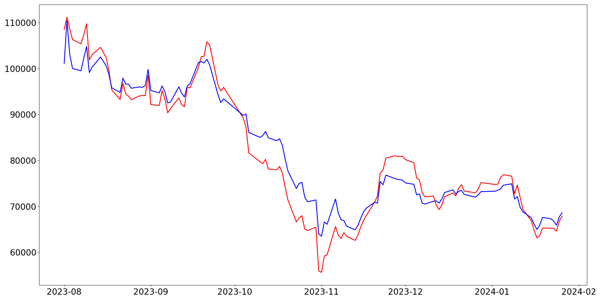 [ - : 실제값(종가) / - : 예측값(종가) ]