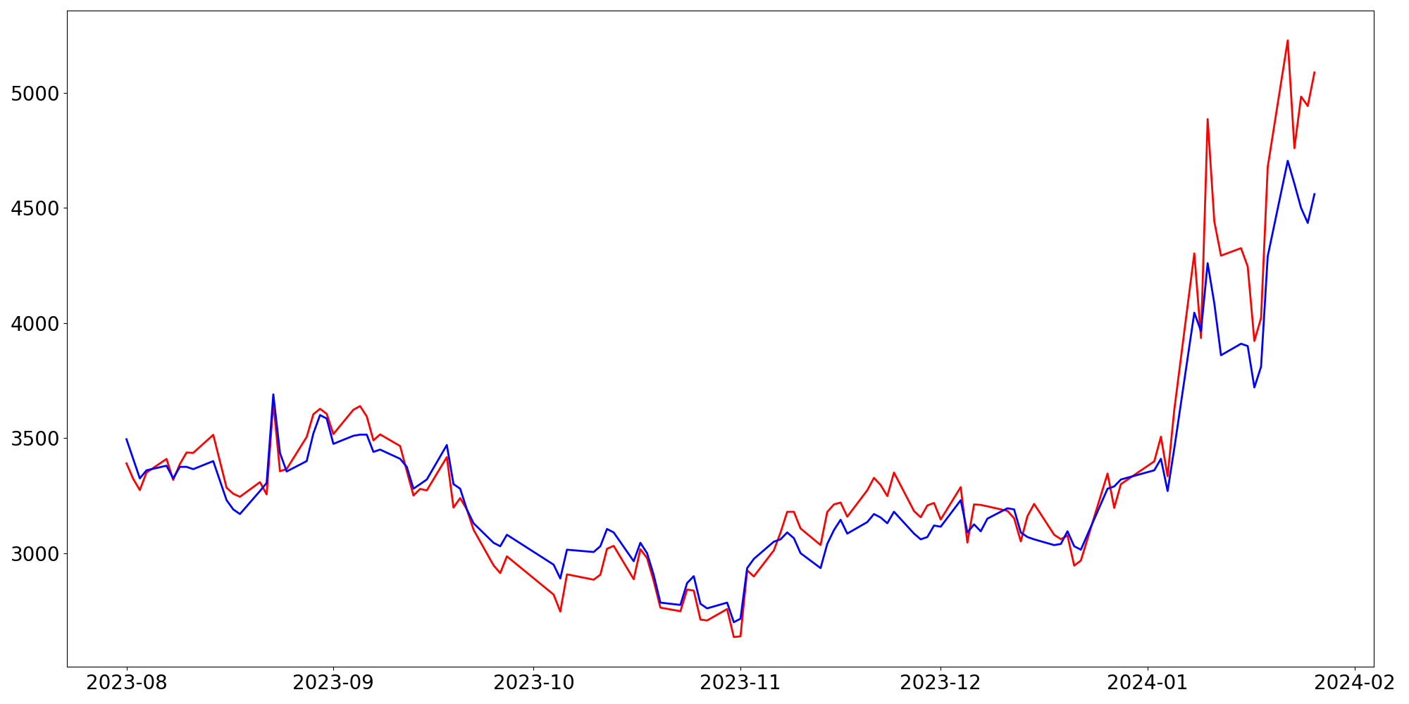 [ - : 실제값(종가) / - : 예측값(종가) ]