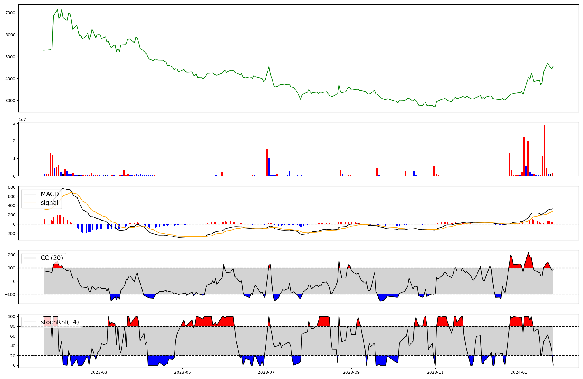 □ 오늘의 종가 : 4,560 (+125, +2.82%)