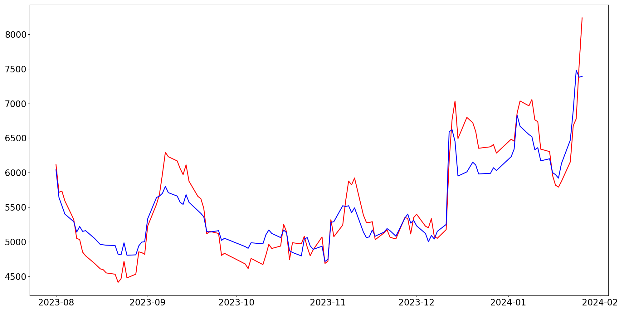 [ - : 실제값(종가) / - : 예측값(종가) ]