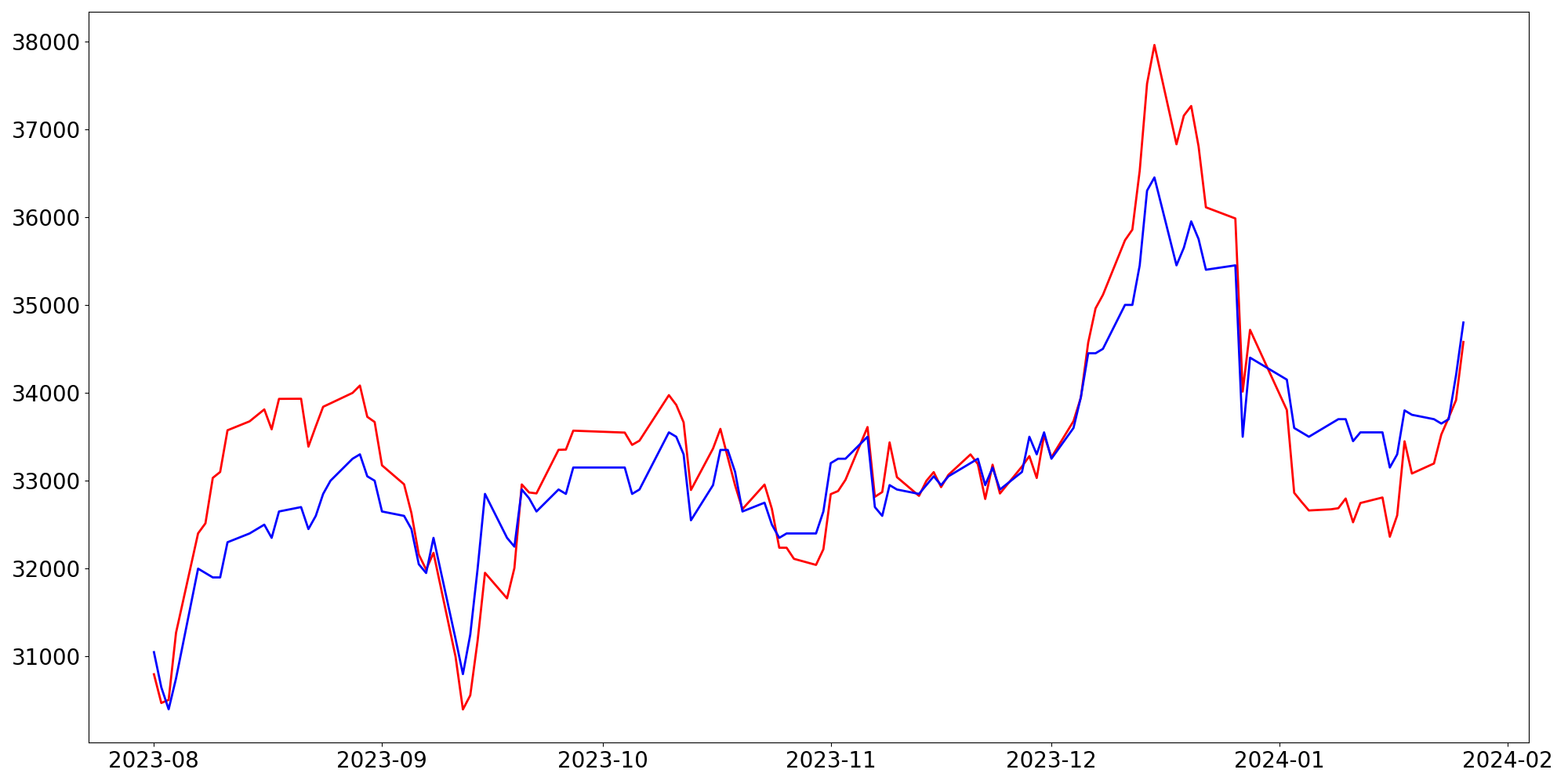 [ - : 실제값(종가) / - : 예측값(종가) ]