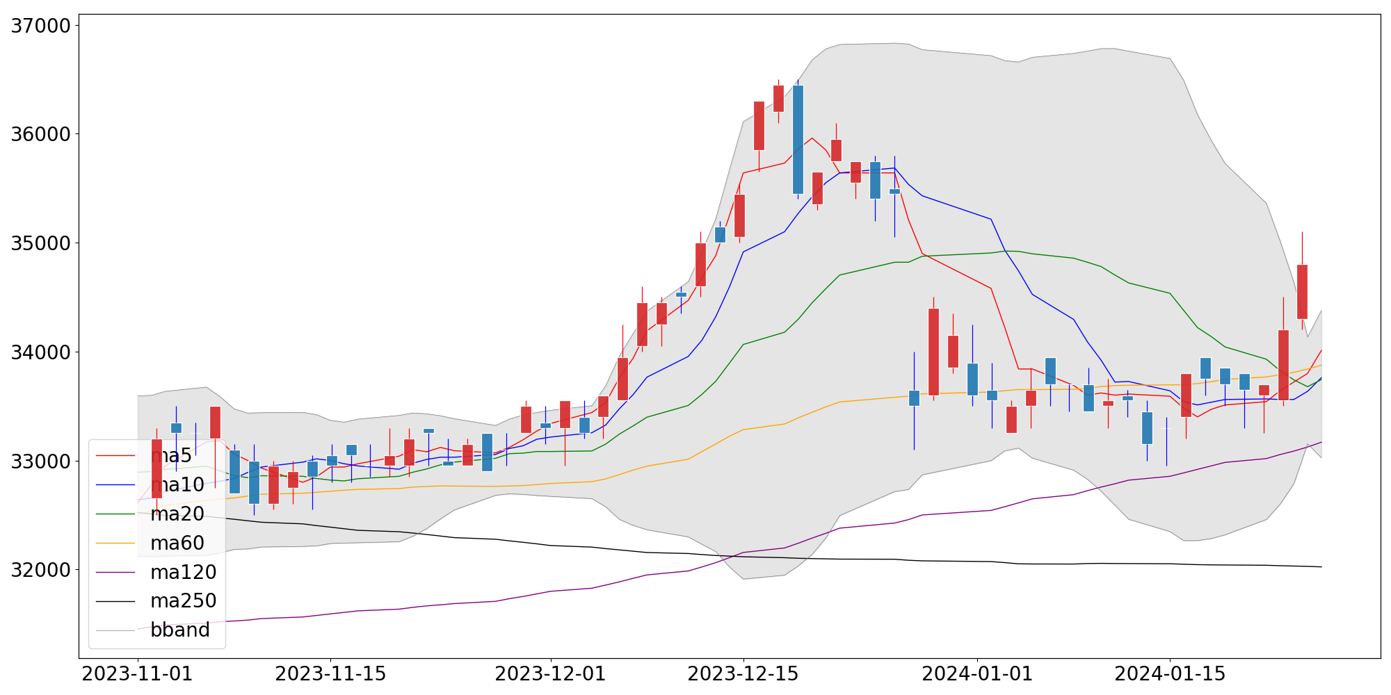 | 단순이동평균 | 33,875.00 | 33,167.92 | 32,023.20 |