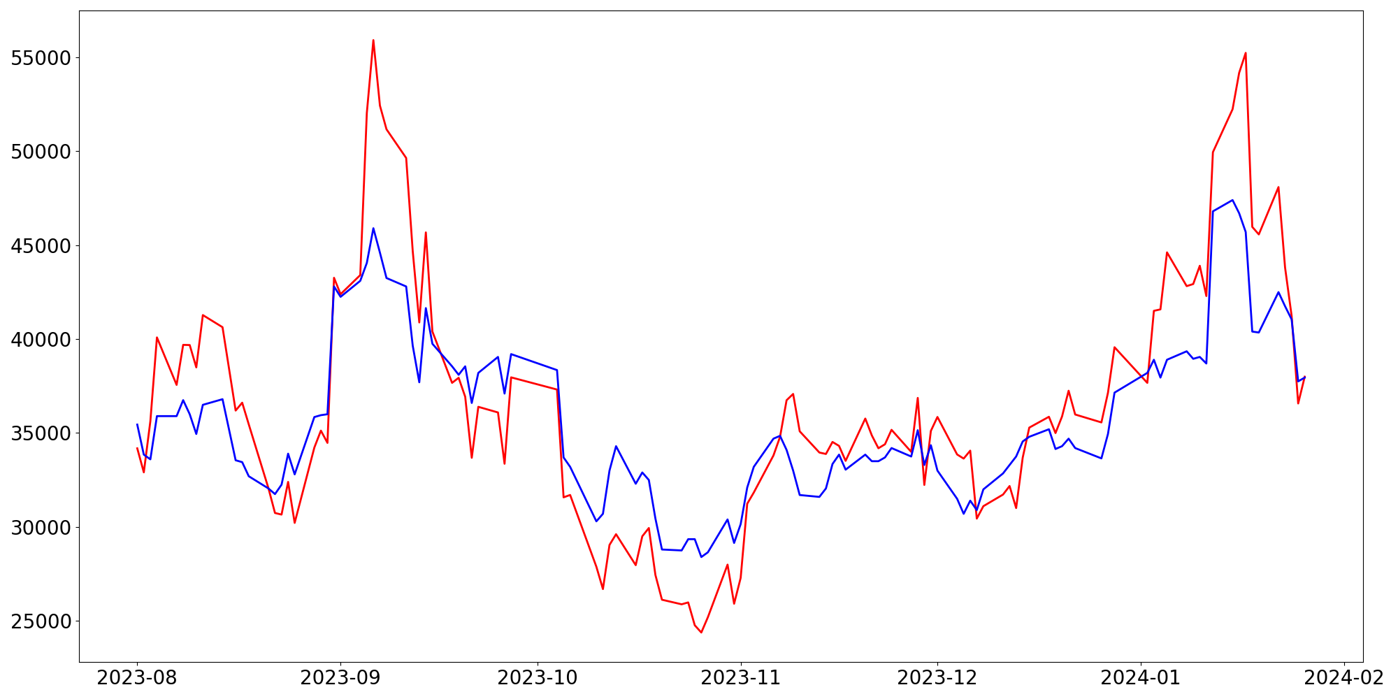 [ - : 실제값(종가) / - : 예측값(종가) ]