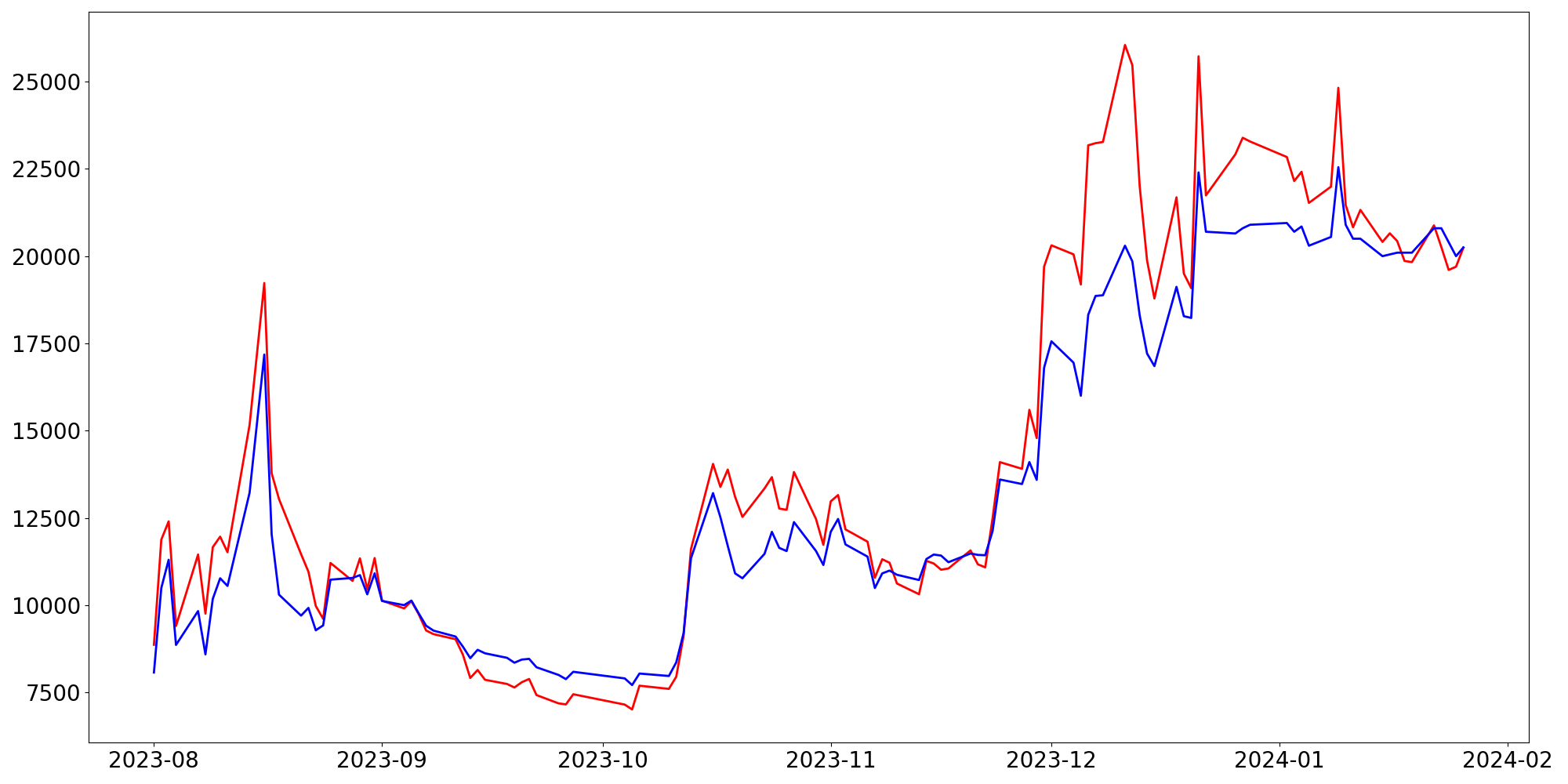 [ - : 실제값(종가) / - : 예측값(종가) ]