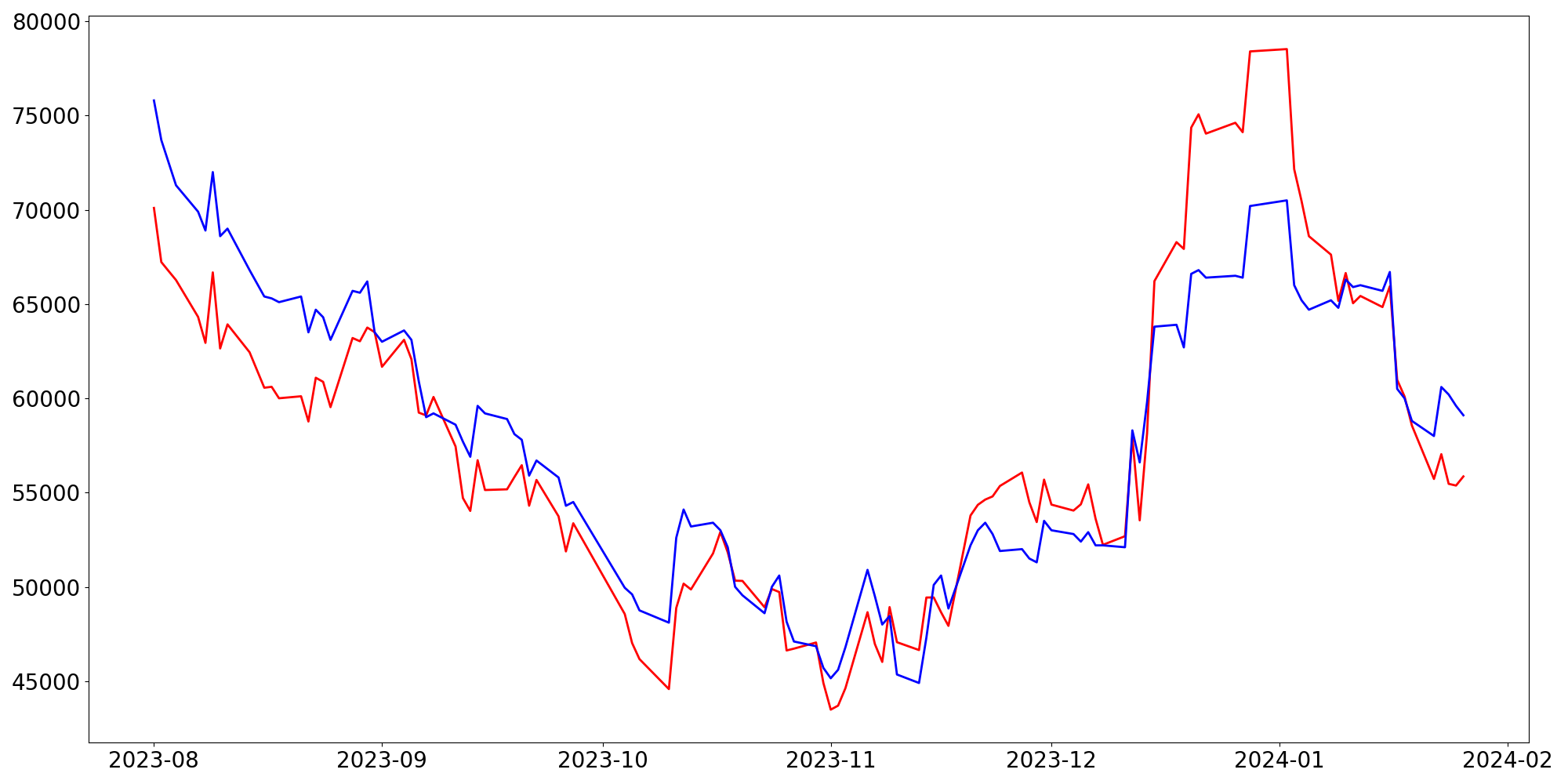 [ - : 실제값(종가) / - : 예측값(종가) ]