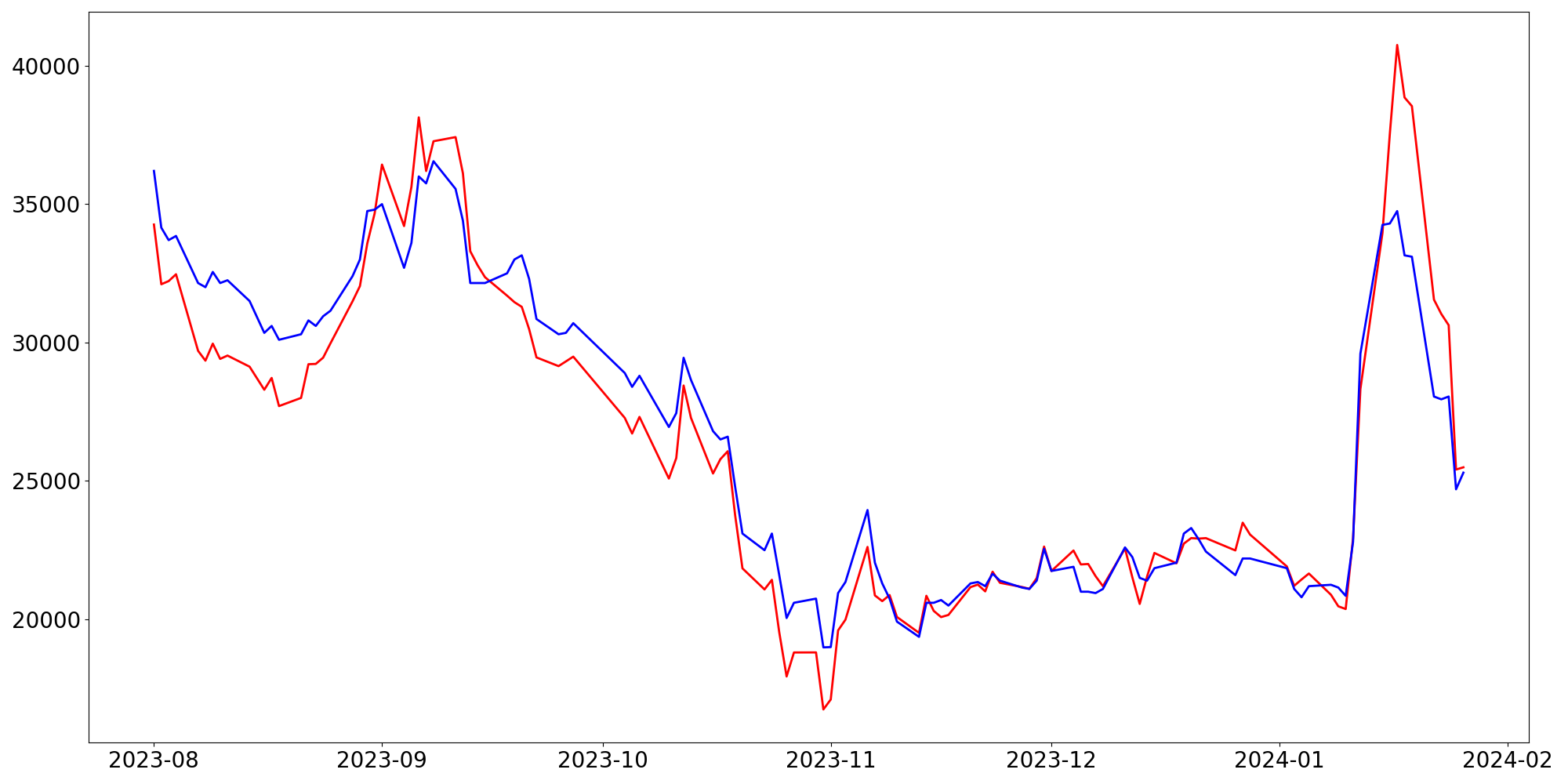 [ - : 실제값(종가) / - : 예측값(종가) ]