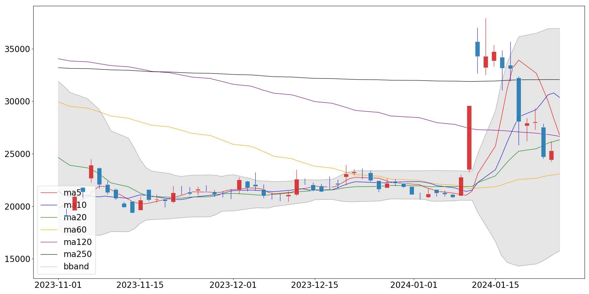 □ 중기 : 현재 종가가 중기(60일) 이동평균값(23,091원)을 상회 하여 중기적 추세 상승 중