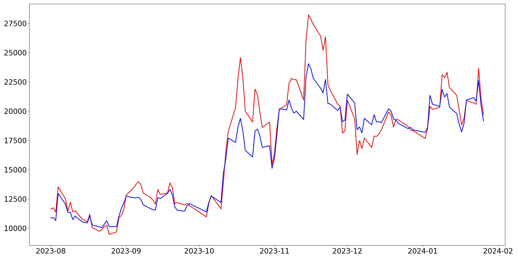 [ - : 실제값(종가) / - : 예측값(종가) ]