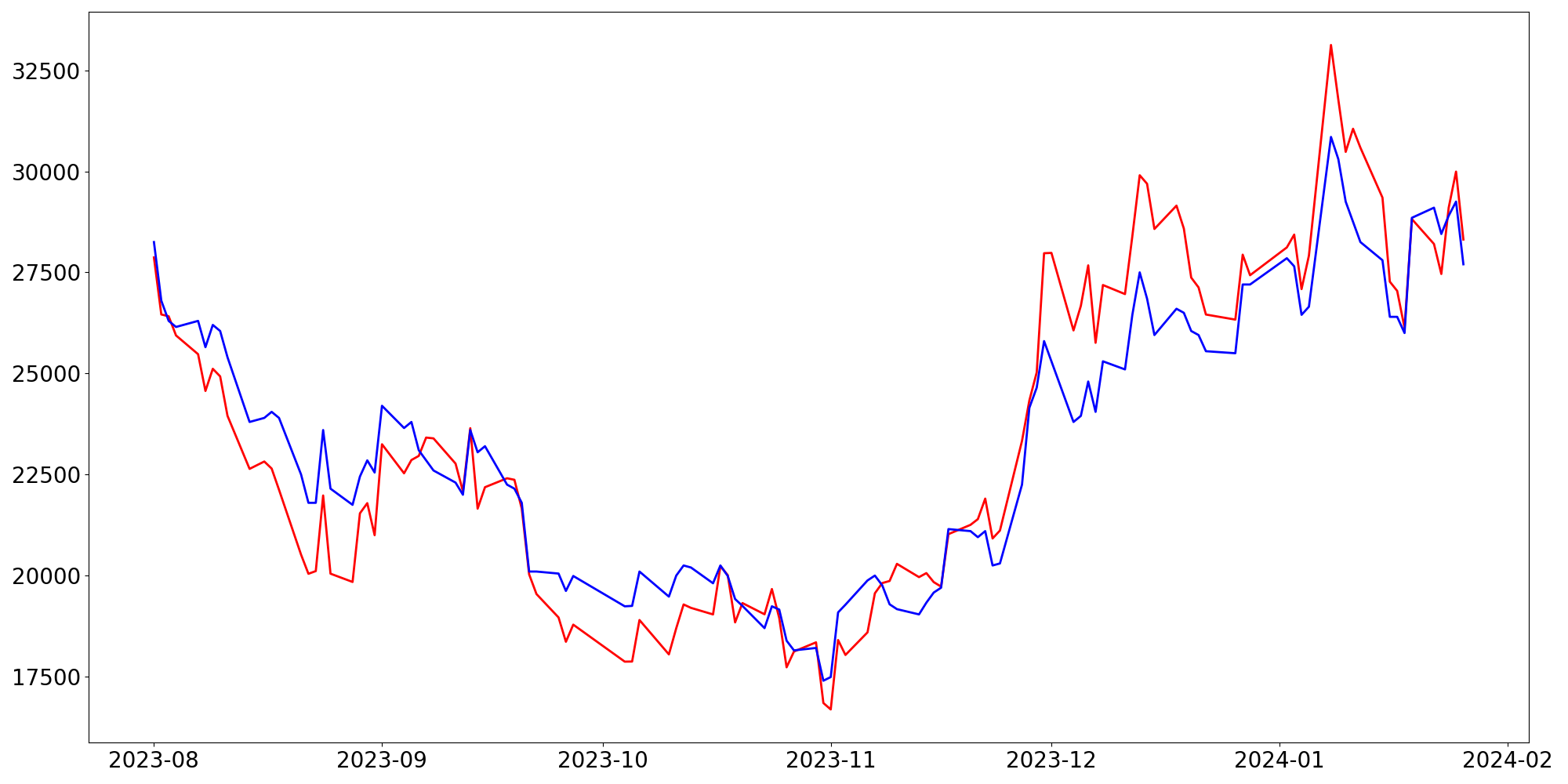 [ - : 실제값(종가) / - : 예측값(종가) ]