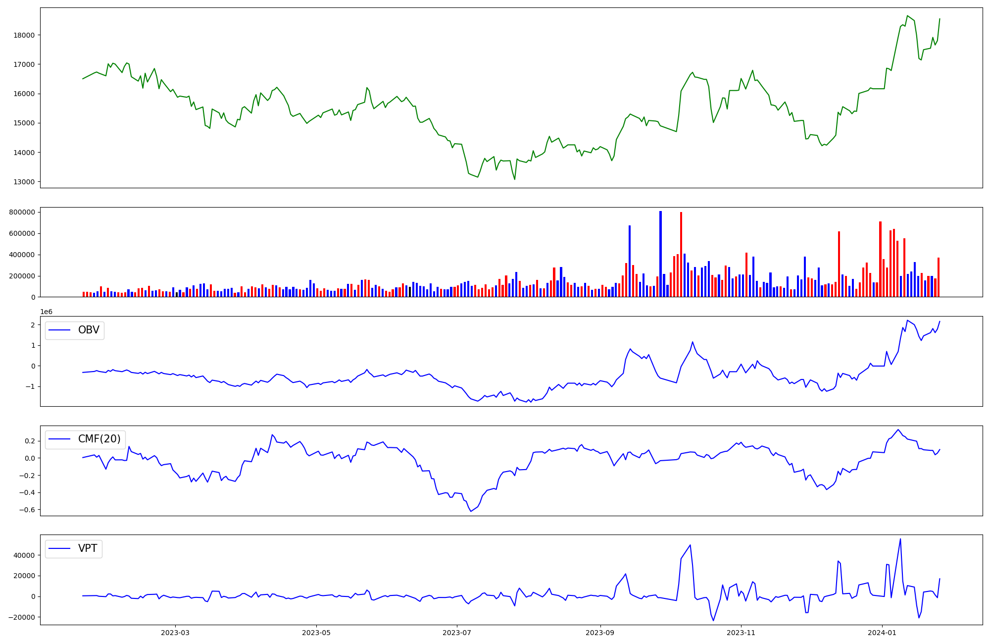 | OBV | CMF | VPT | |