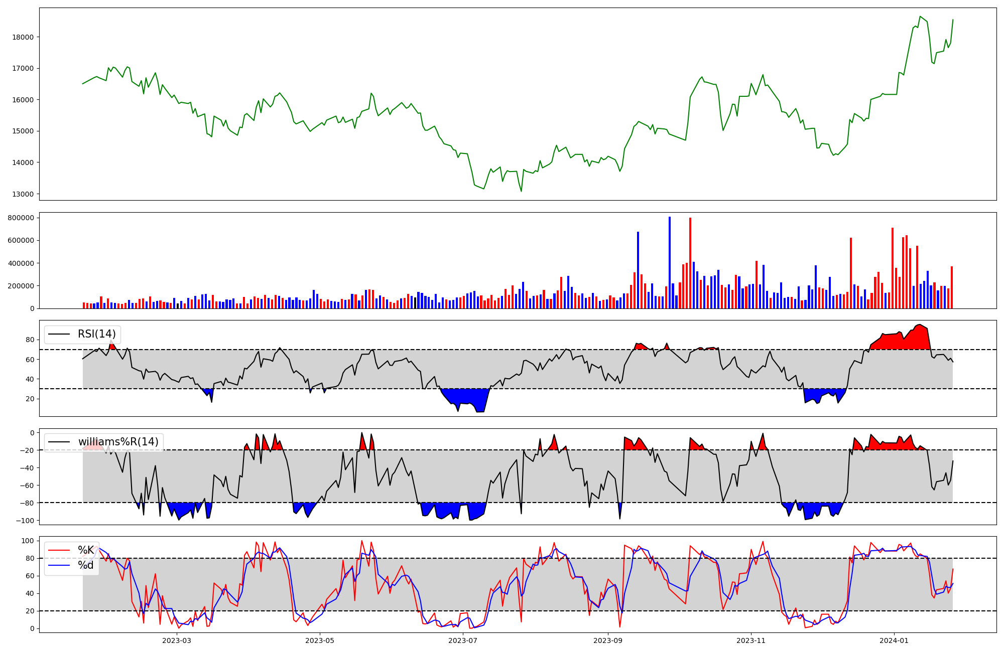 | RSI | Williams %R | stochastic(%K) | |