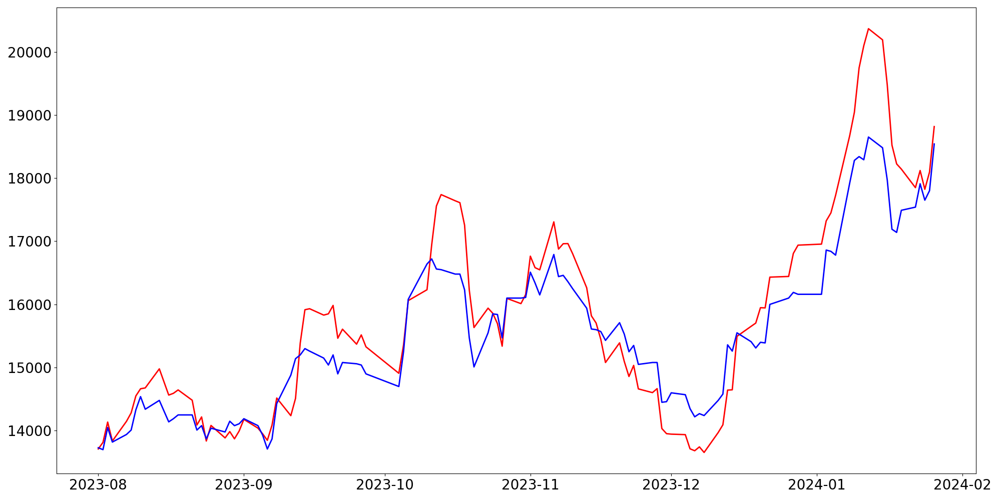 [ - : 실제값(종가) / - : 예측값(종가) ]