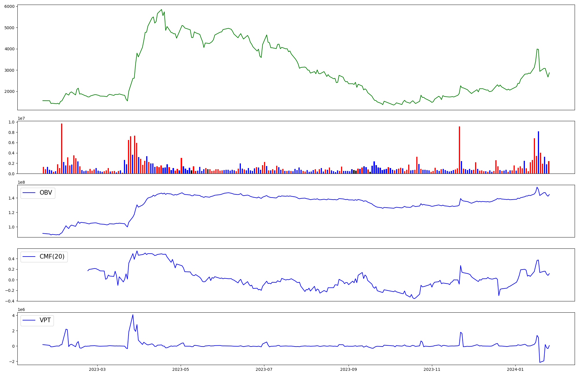 | OBV | CMF | VPT | |