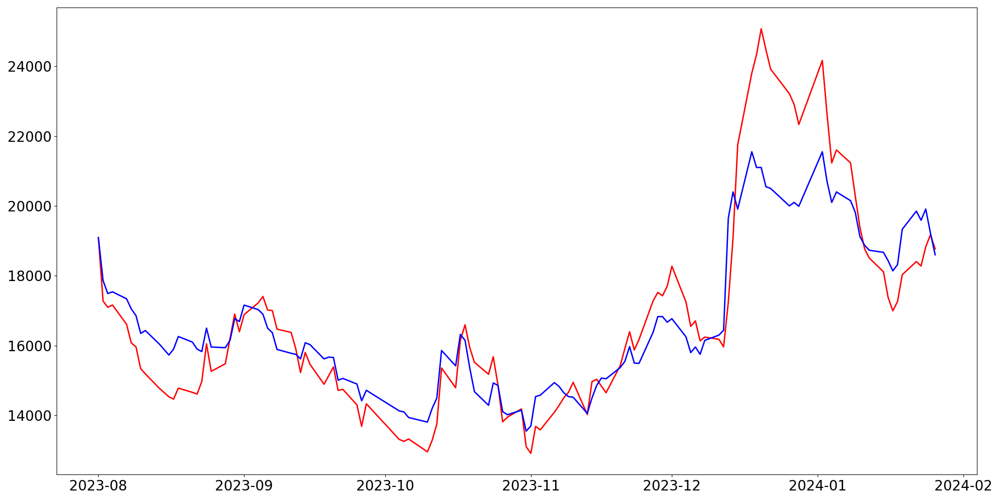 [ - : 실제값(종가) / - : 예측값(종가) ]