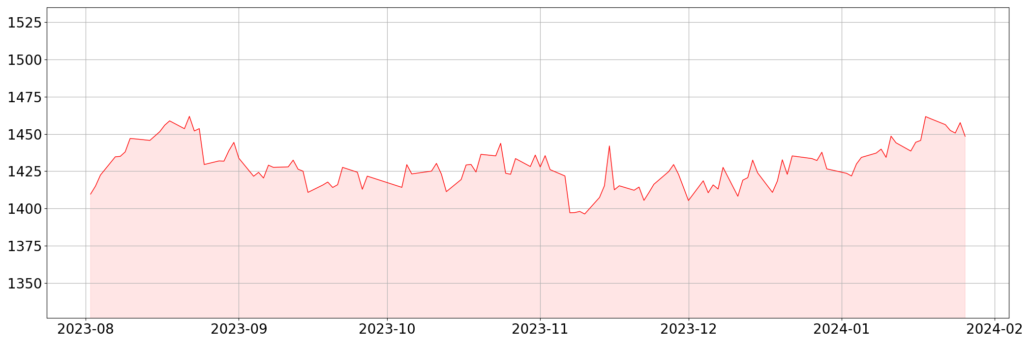 | 현재 | 1,448.43 | -9.18 | -0.63% |