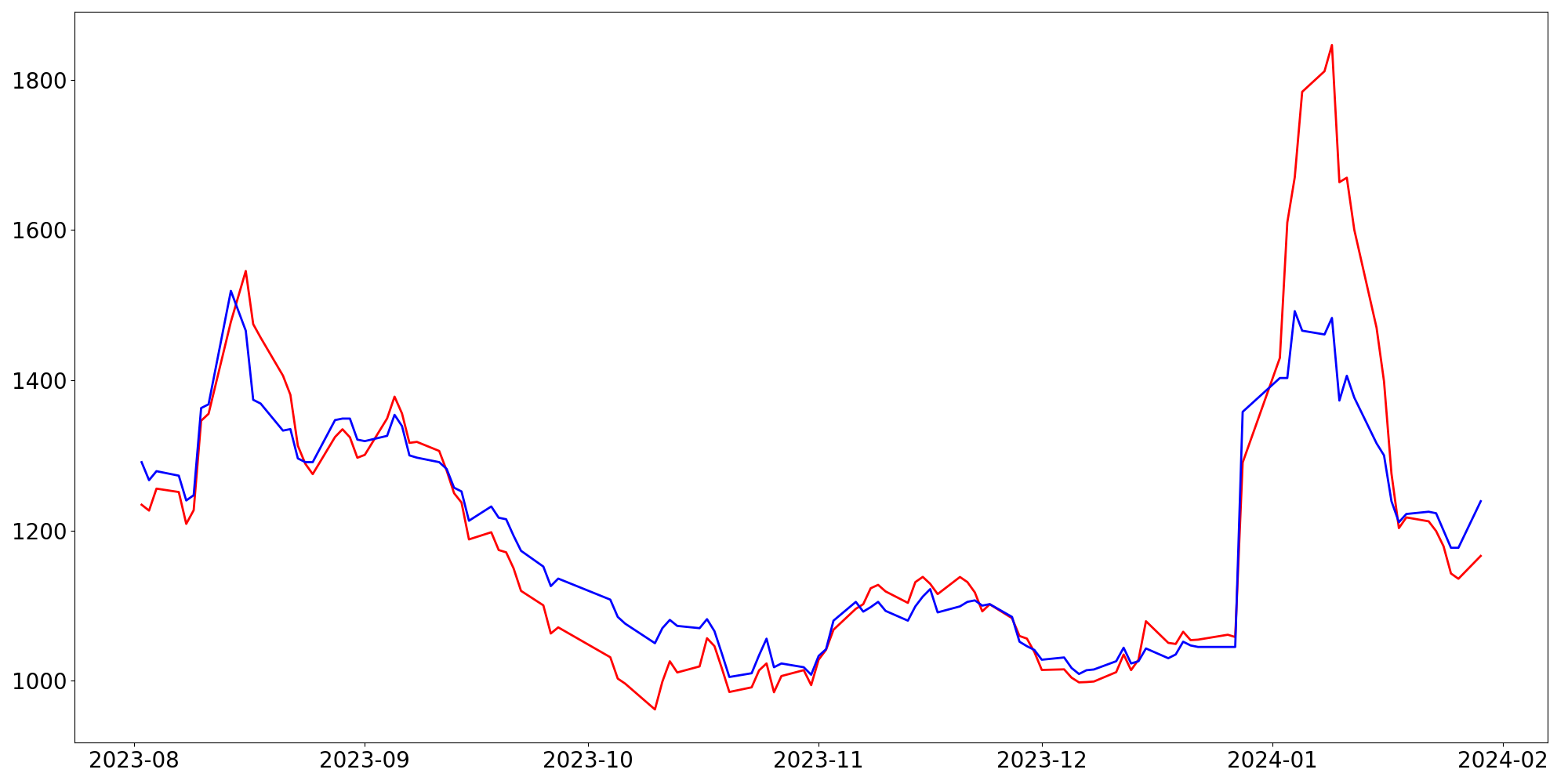 [ - : 실제값(종가) / - : 예측값(종가) ]