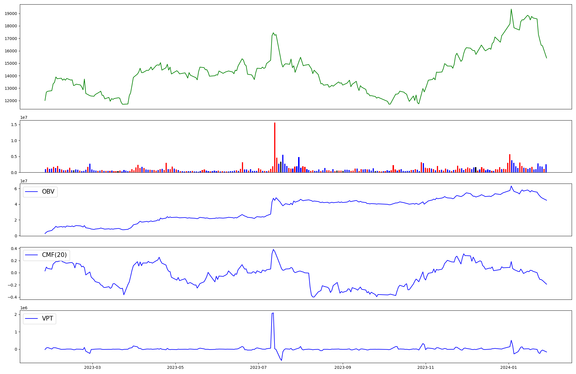 | OBV | CMF | VPT | |