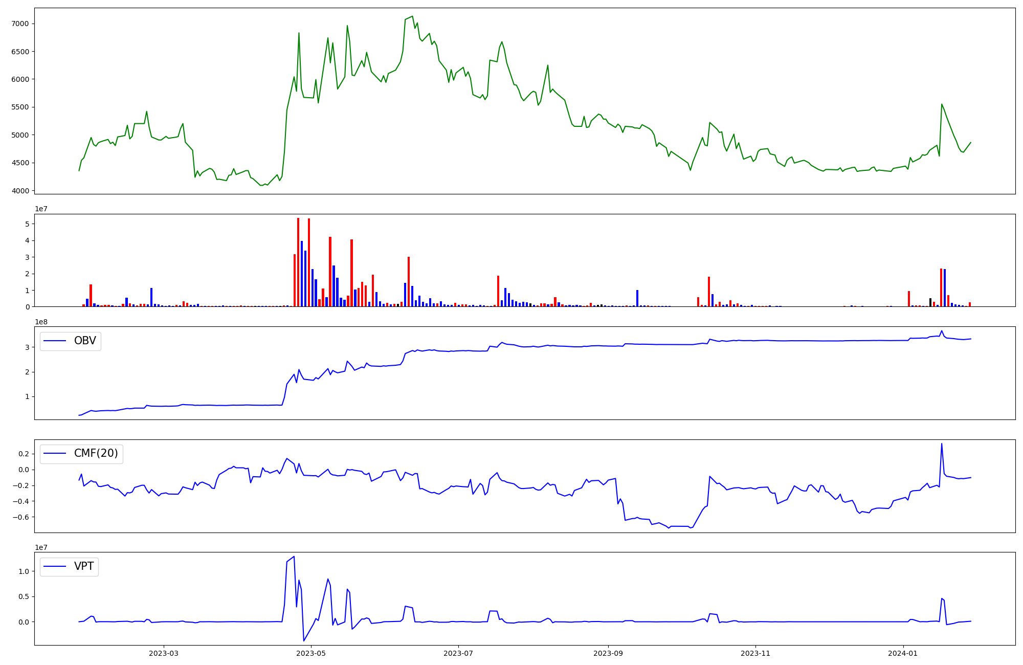 | OBV | CMF | VPT | |