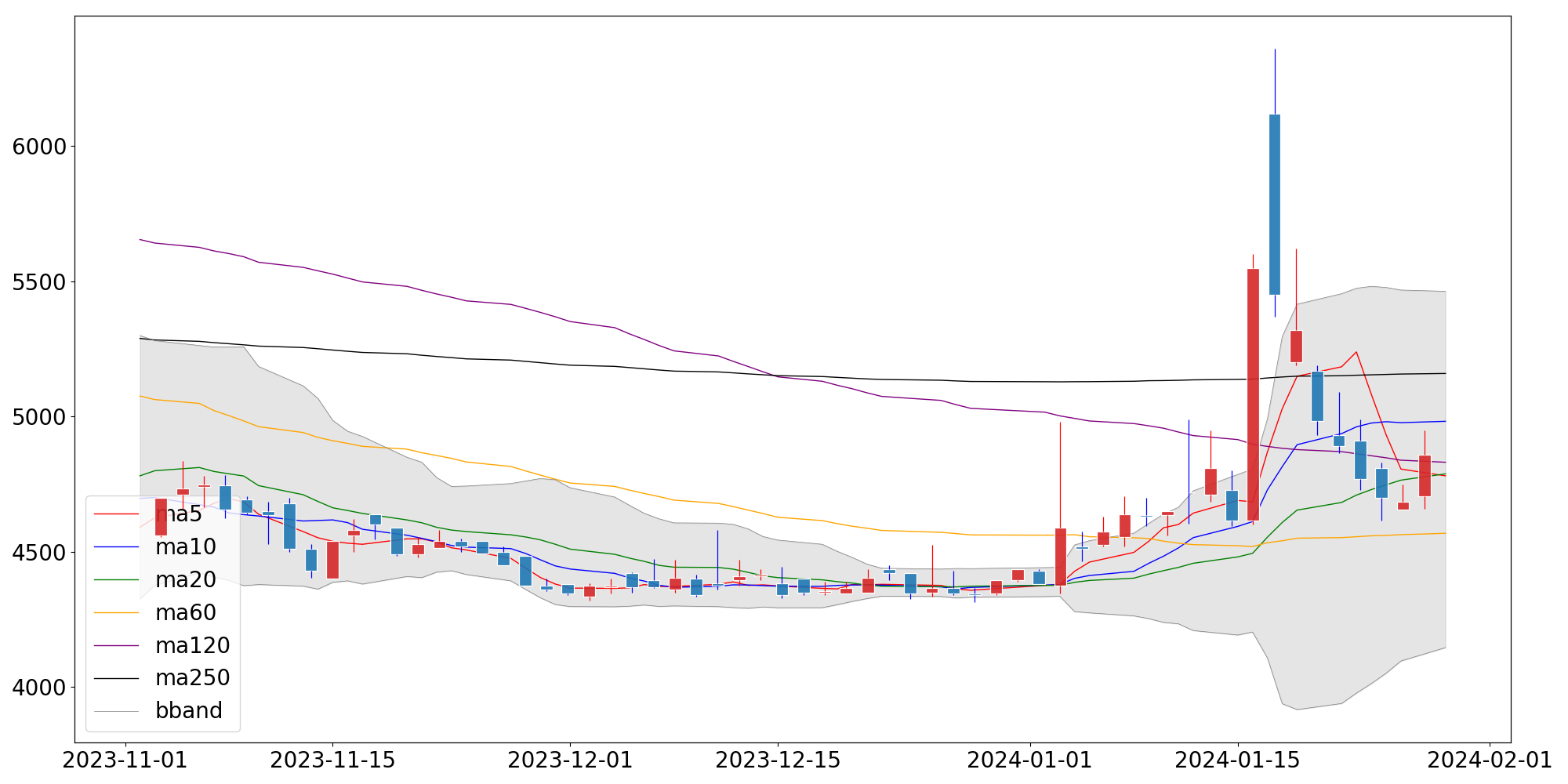 □ 오늘의 종가 : 4,860 (+175, +3.74%)