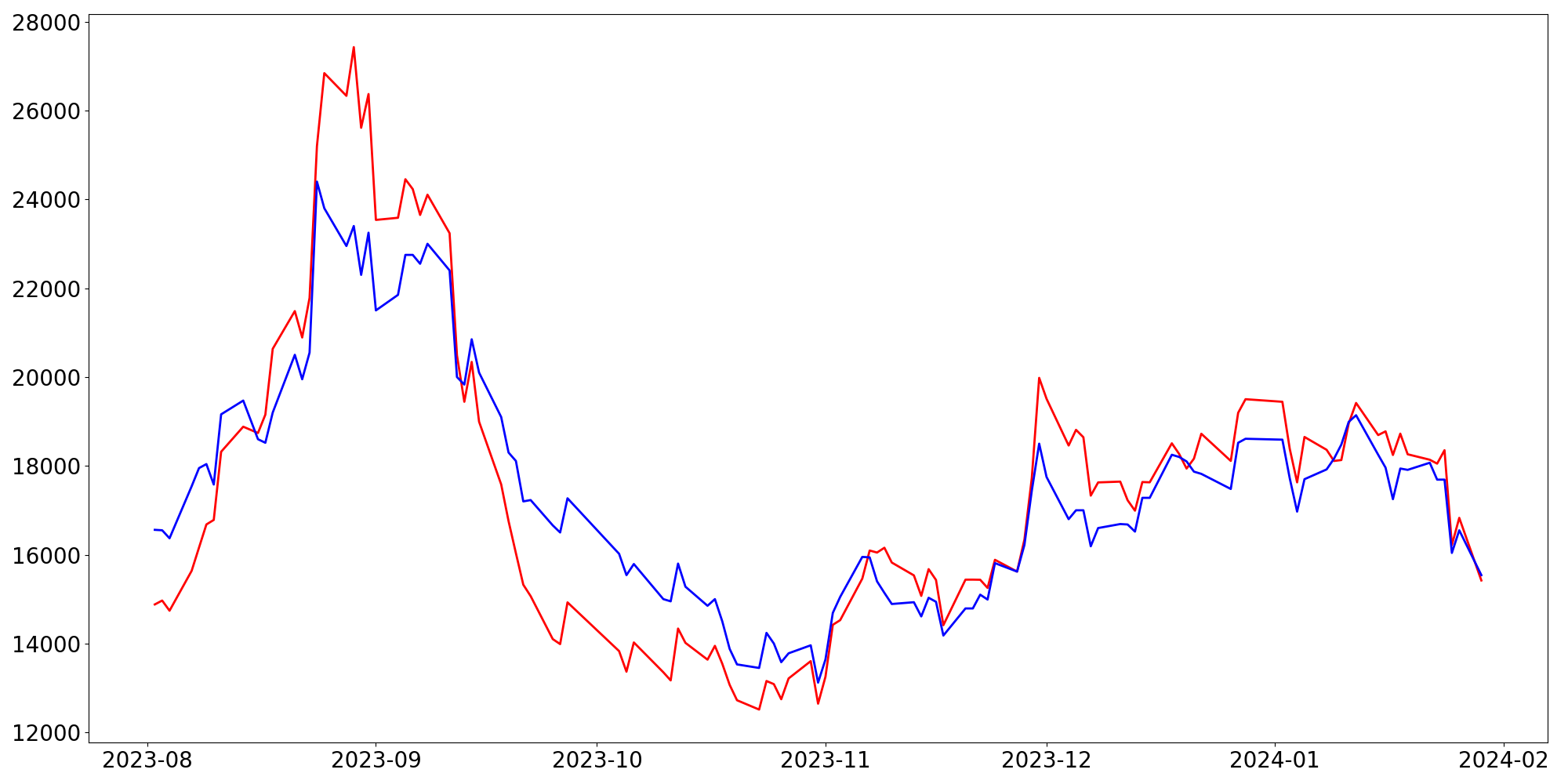 [ - : 실제값(종가) / - : 예측값(종가) ]
