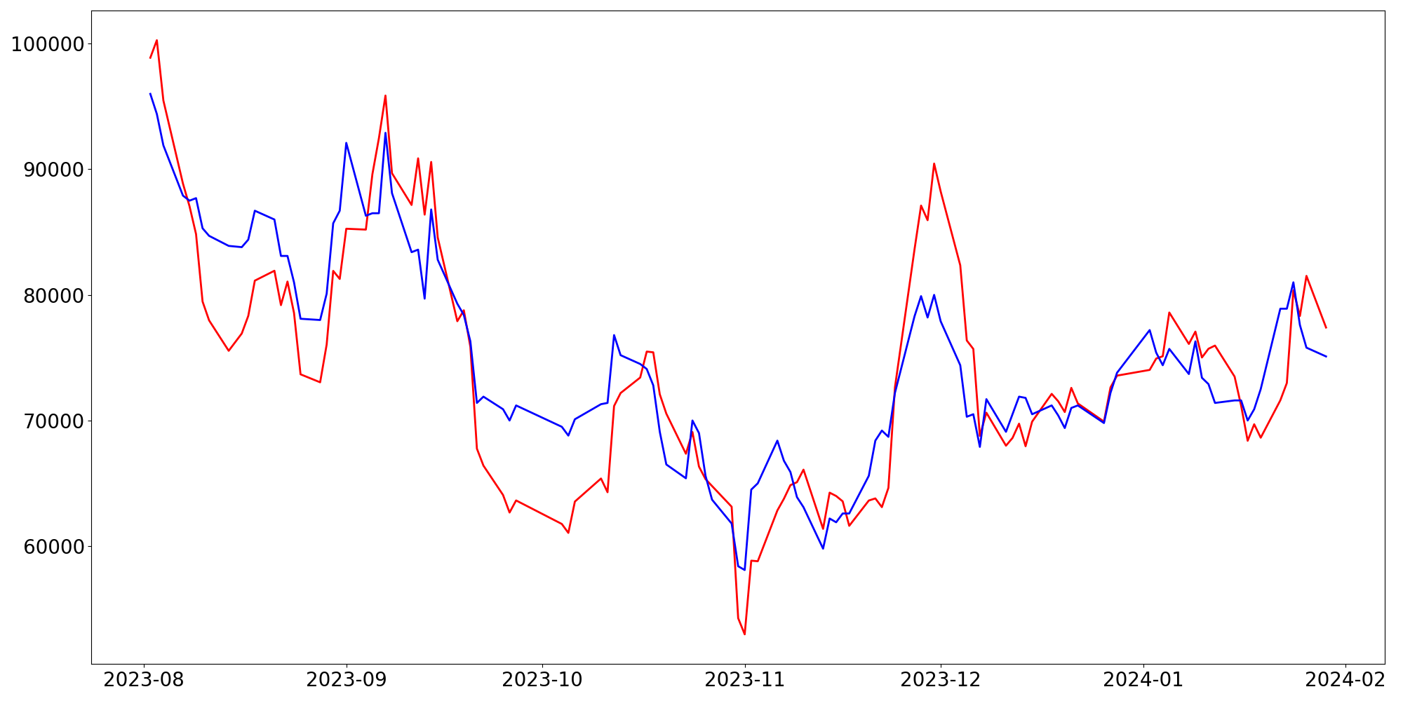 [ - : 실제값(종가) / - : 예측값(종가) ]