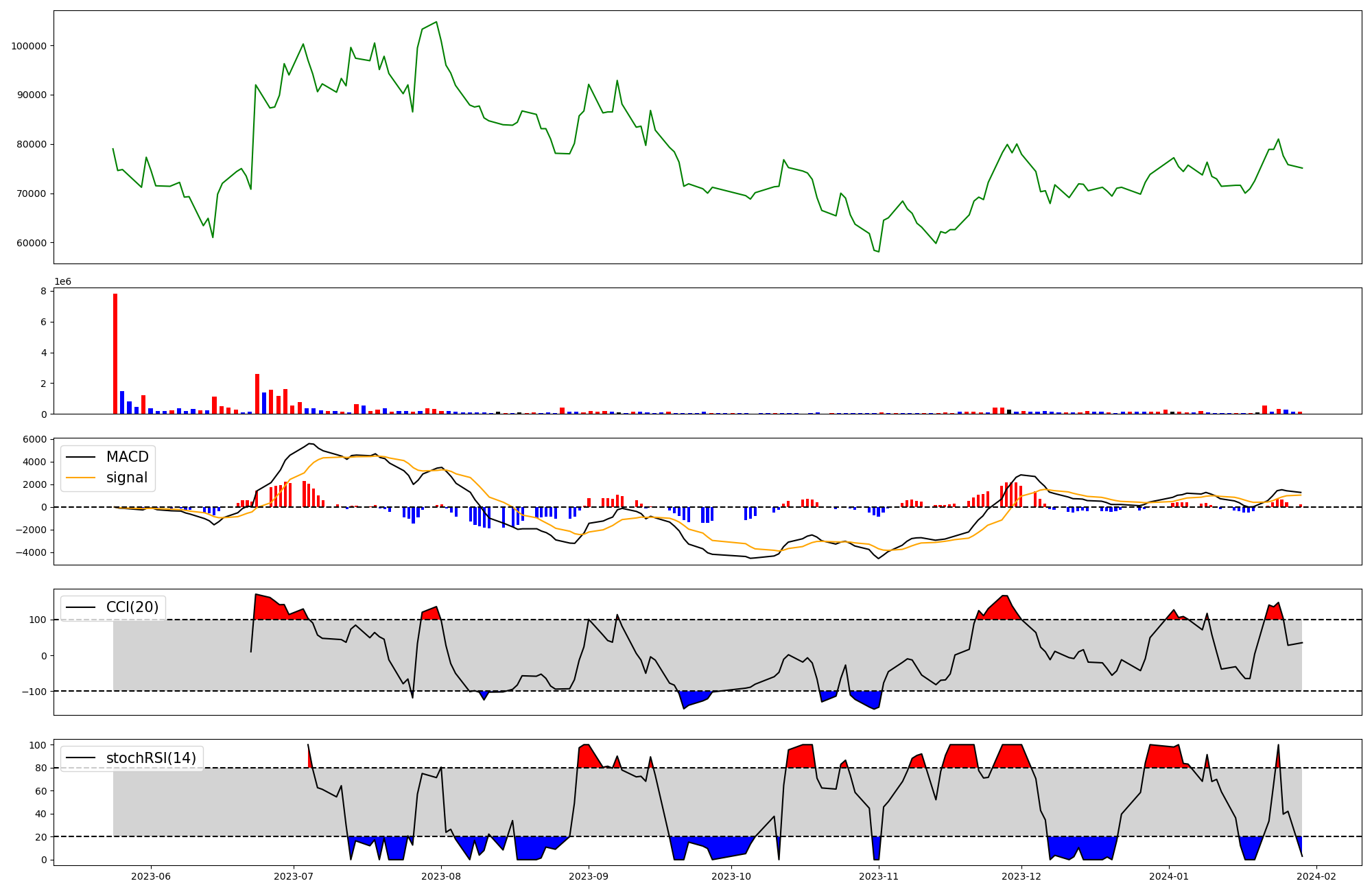 □ 오늘의 종가 : 75,100 (-700, -0.92%)