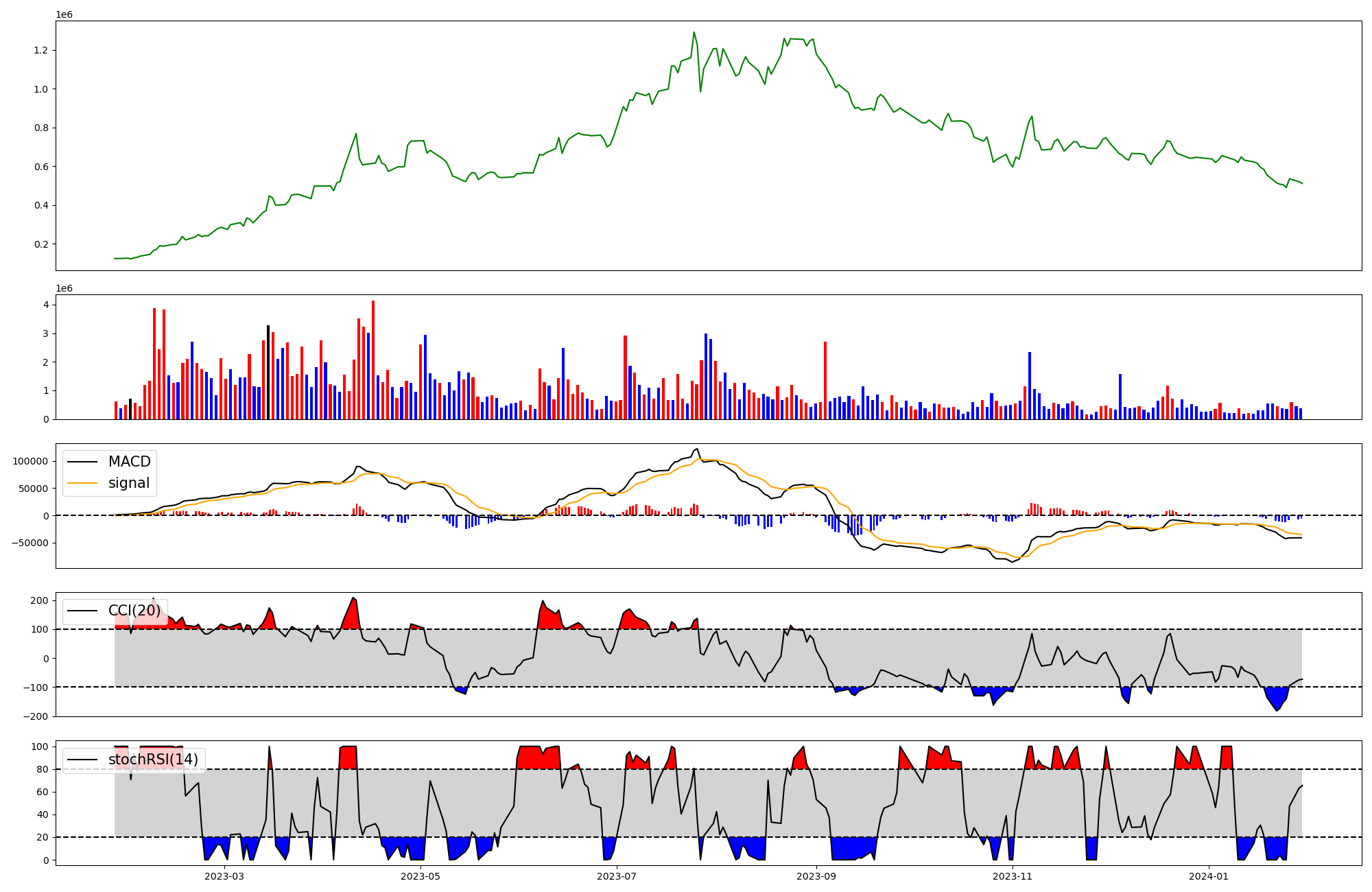 □ 중기 : 현재 종가가 중기(60일) 이동평균값(656,592원)을 하회 하여 중기적 추세 하락 중