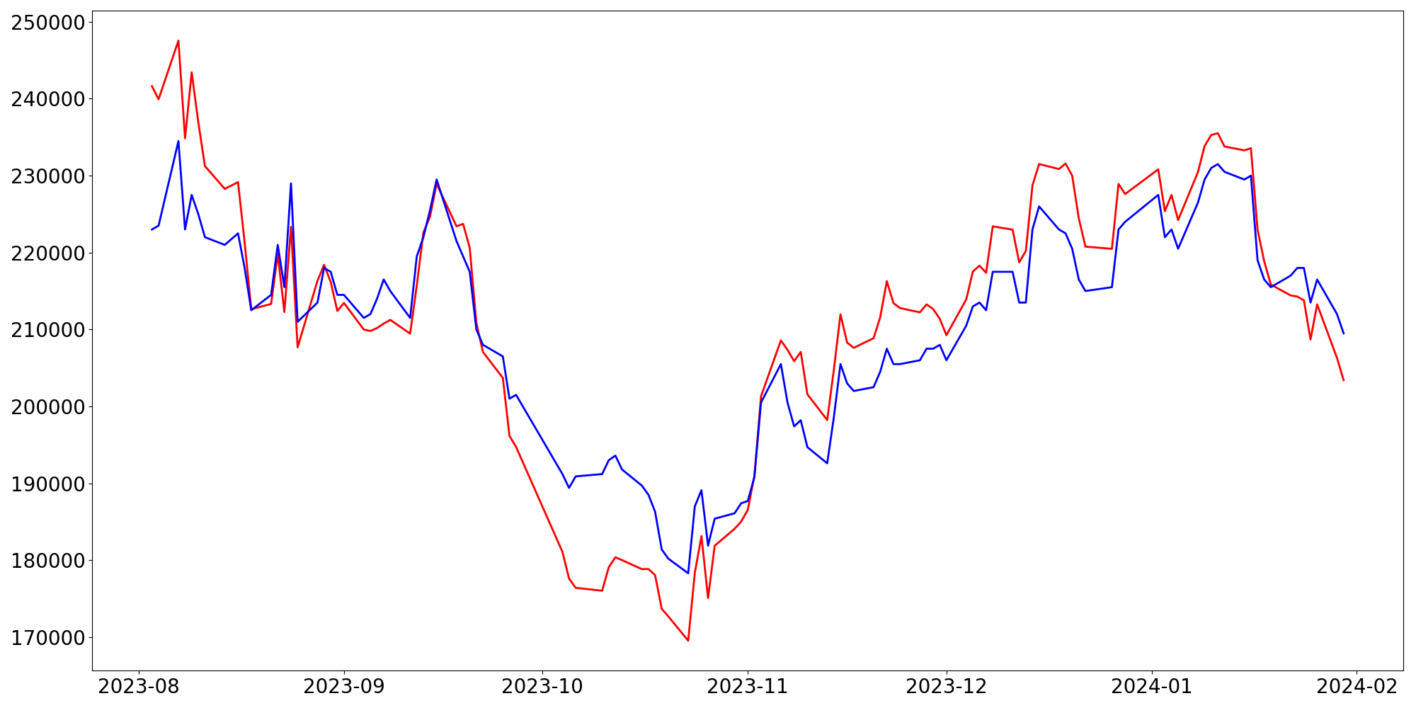 [ - : 실제값(종가) / - : 예측값(종가) ]