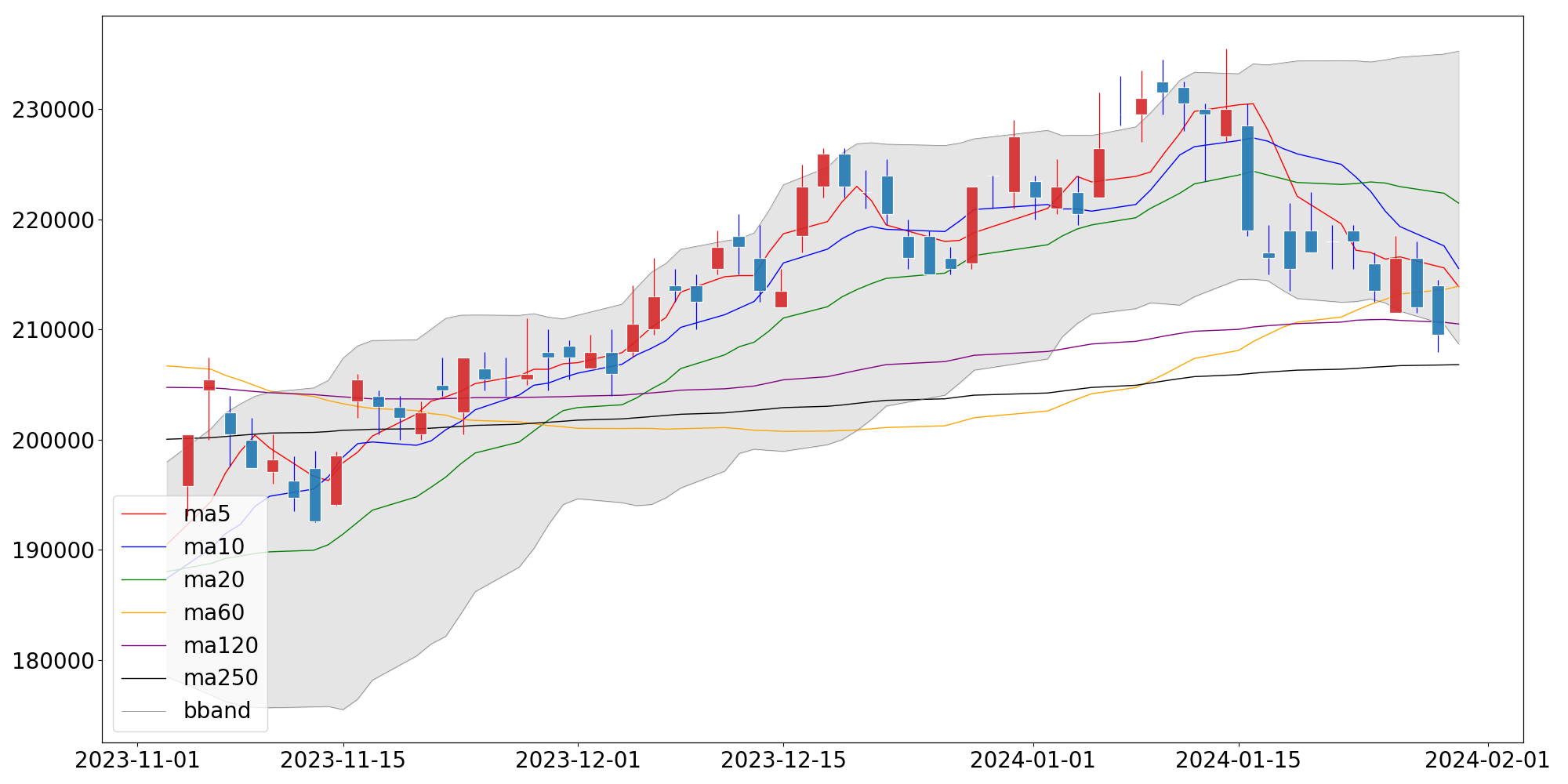 | 단순이동평균 | 213,900.00 | 215,550.00 | 221,475.00 |