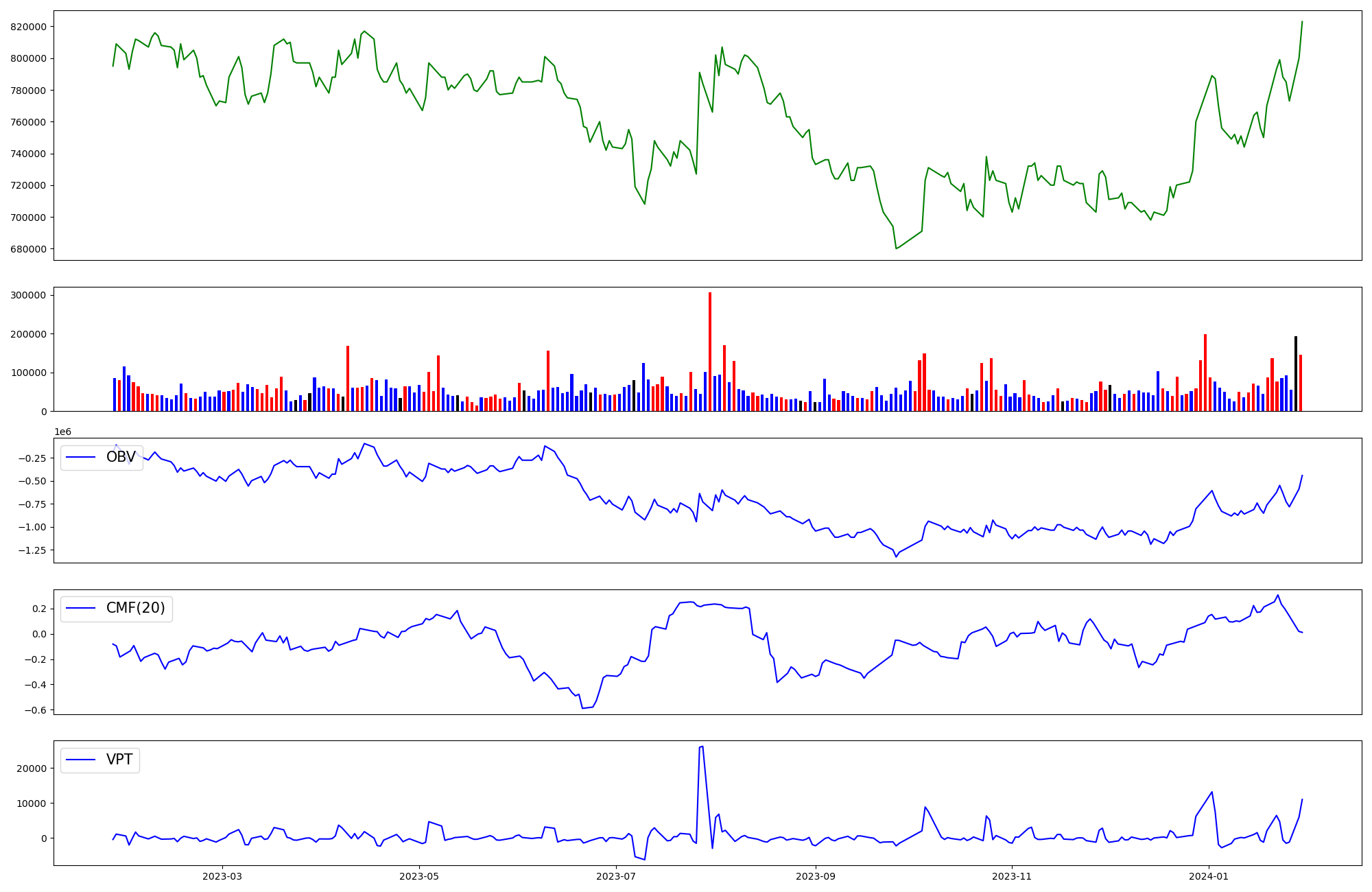 | OBV | CMF | VPT | |