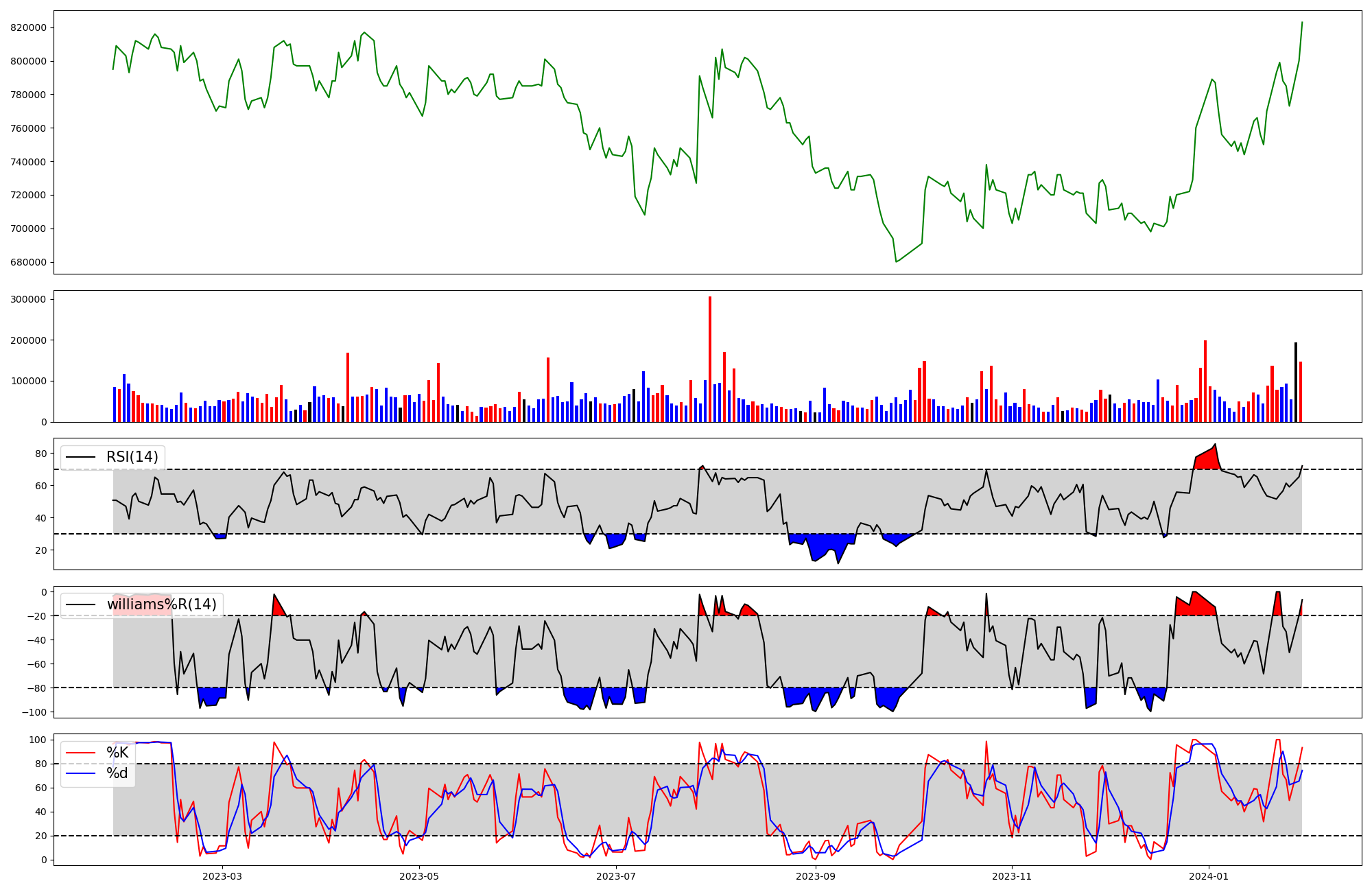 | RSI | Williams %R | stochastic(%K) | |